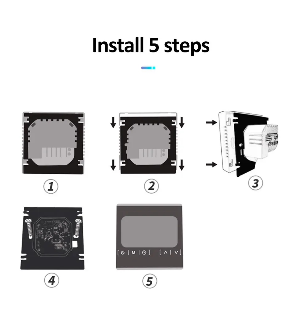 1. Функция памятиЗапомните все настройки после внезапного отключения питания. Когда питание включено снова, вам не нужно сбросить его.2. Программируемая функцияПоддержка 5 + 2, 6 + 1 или 7 дней еженедельно программируется, шесть периодов программируемого контроля температуры.3. Блокировка для детей, чтобы избежать неправильной работы.4. Функция WifiТермостат wifi может управляться мобильным приложением, где бы вы ни находились.5. Поддержка голосового управления Alexa. (Только модель WiFi)6. Приложение поддерживает большинство популярных языков.7. Поддержка переключения для отображения Фаренгейта.