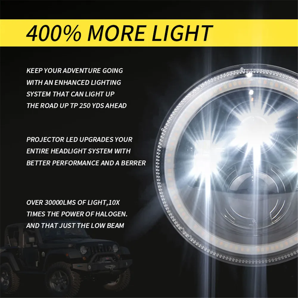 1 пара 7 дюймов H4 светодиодный фары DRL Hiкороче спереди и длиннее сзади) луч 50 Вт 30 Вт Halo Кольцо янтарь Ангел глаз для Niva мотоцикл Lada Offroad 4x4 УАЗ 12 В24 в пост