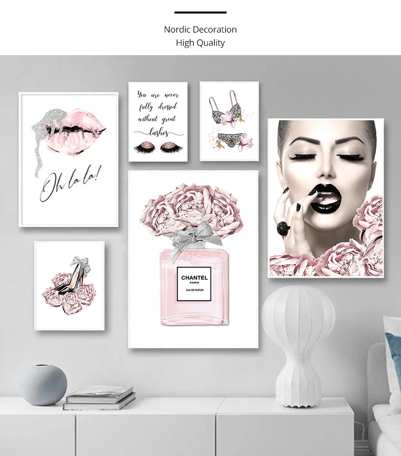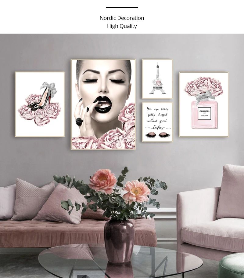 Современные розовые цветочные парфюмерные модные плакаты с принтом ...