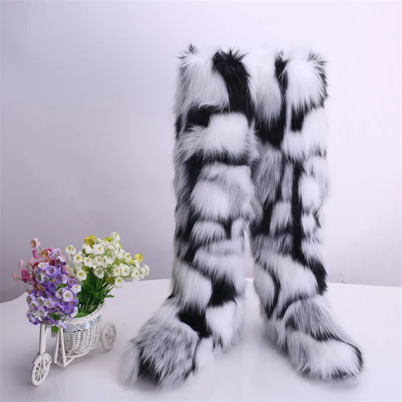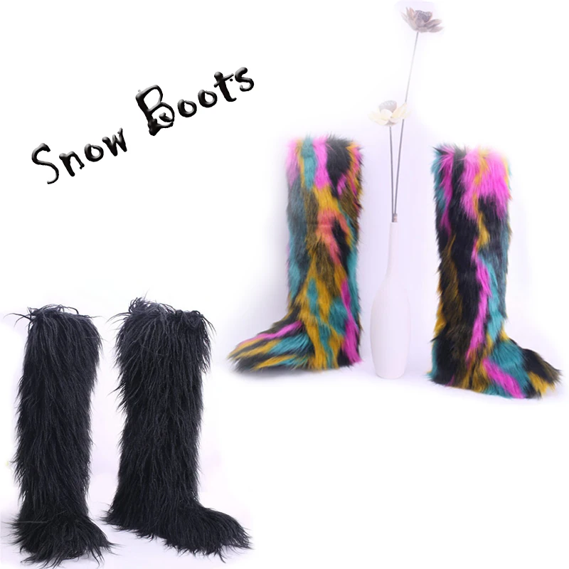 Зимние плюшевые сапоги выше колена, женские пушистые сапоги на платформе для снега, сапоги из искусственного меха, женская уличная теплая обувь, большой размер 36-43
