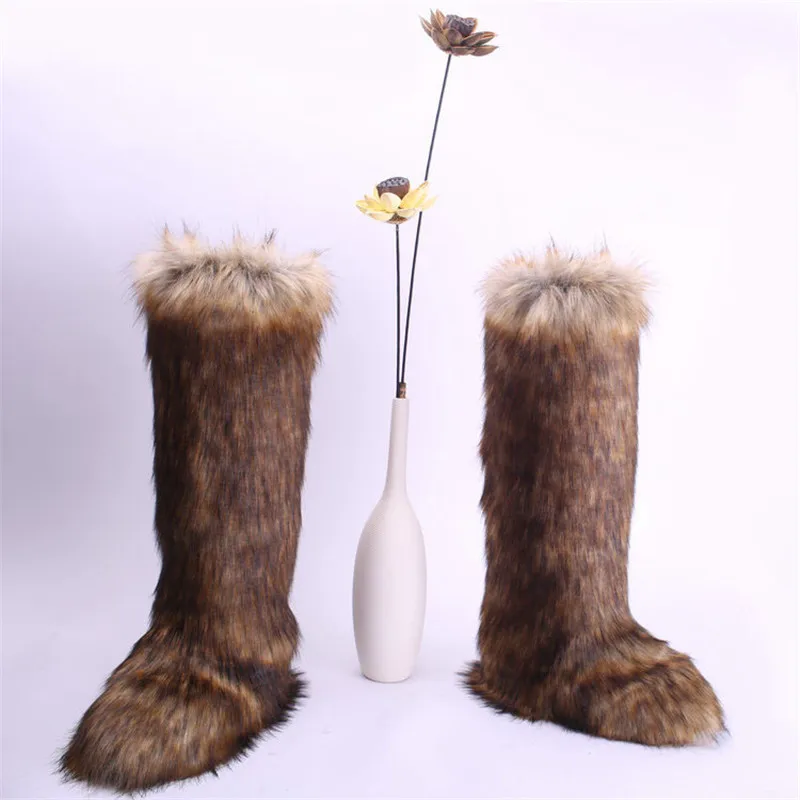 Зимние Сапоги выше колена из плюша женские пушистые зимние сапоги на платформе меховые сапоги с искусственным мехом женская уличная теплая обувь Большие размеры 36-43