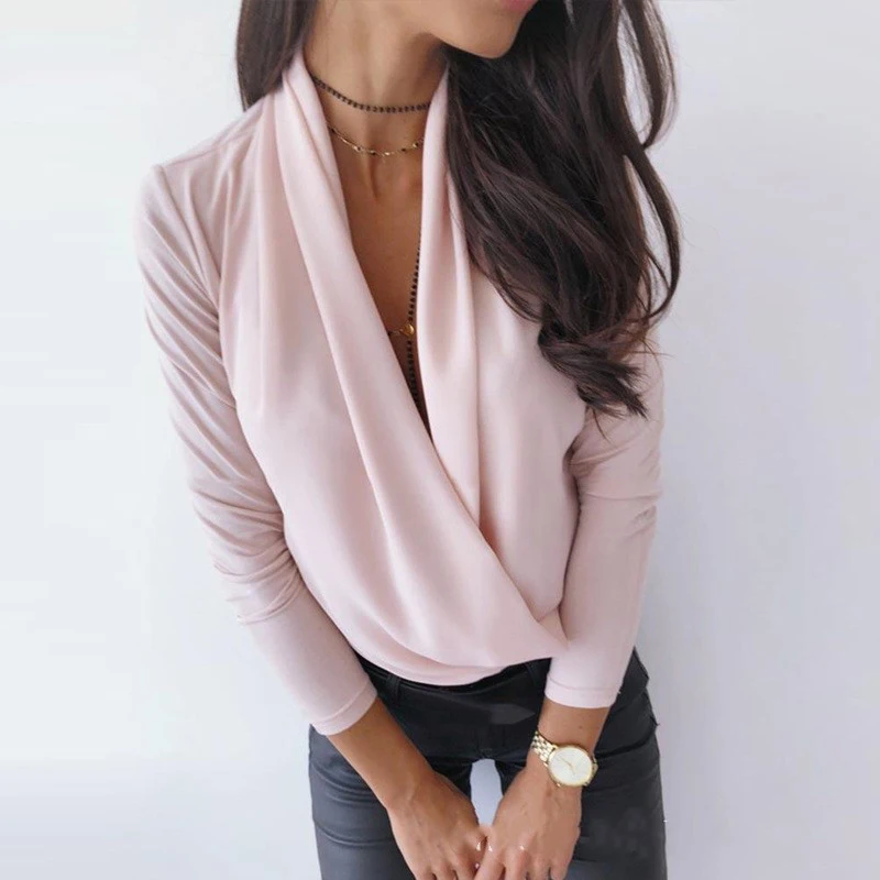 Футболка женская с V-образным вырезом, пикантный офисный Топ в стиле пэчворк с длинным рукавом, свободная рубашка, повседневная одежда с принтом