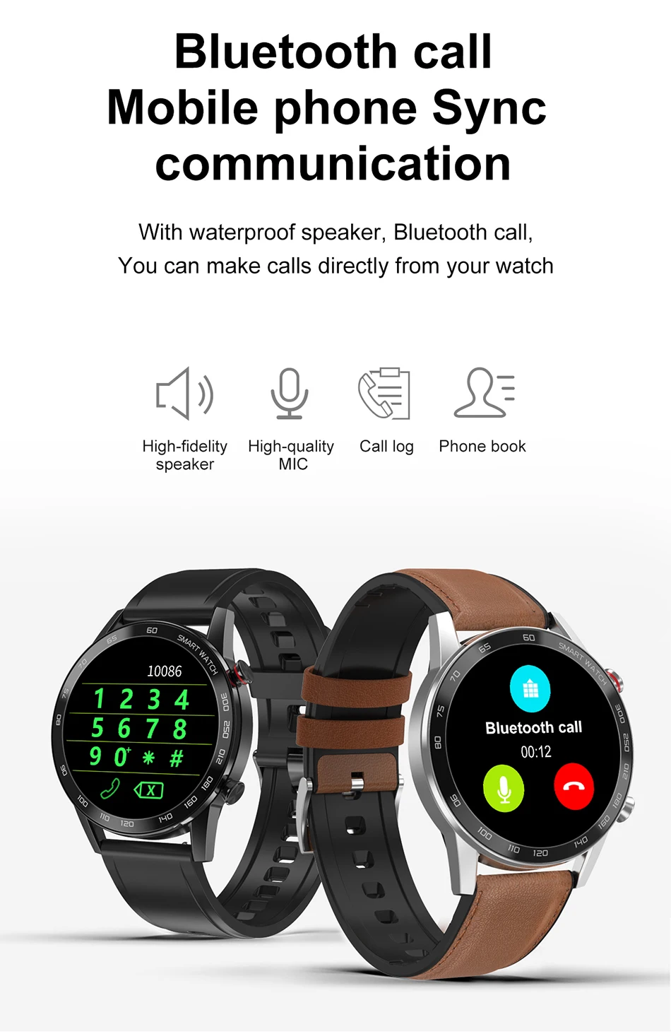 С водонепроницаемым динамиком, bluetooth-вызовом, вы можете совершать звонки прямо из ваших часов Высокоточный динамик/высококачественный микрофон/журнал звонков/Телефонная книга