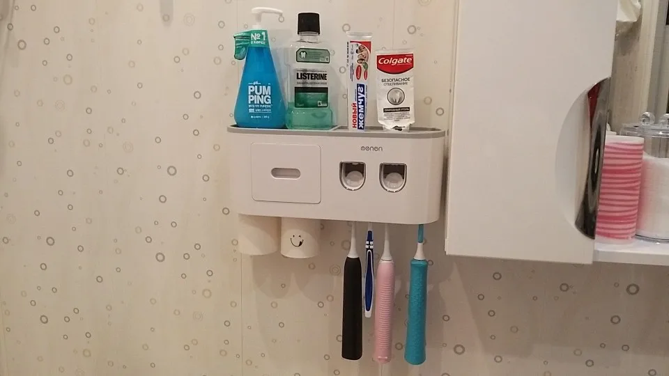 Держатель для зубных щеток GESEW для ванной комнаты, многофункциональная зубная щетка держатель для зубных щеток с выдавливателем для зубной пасты, набор аксессуаров для ванной комнаты