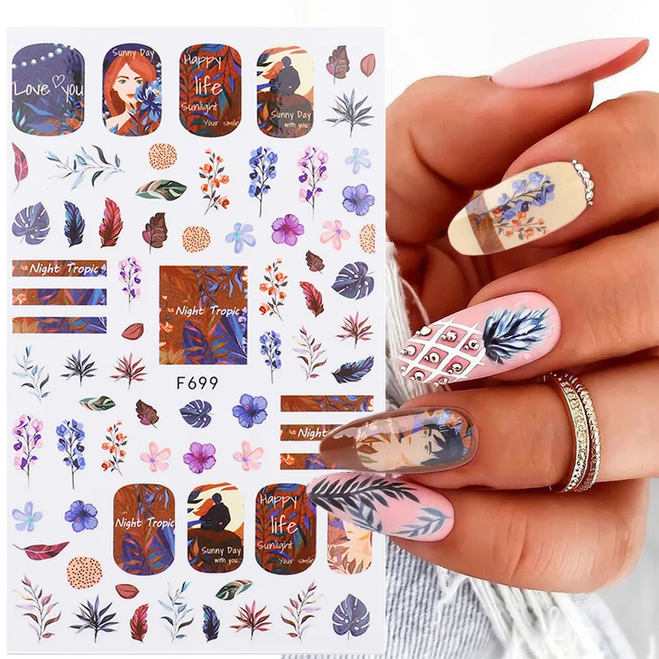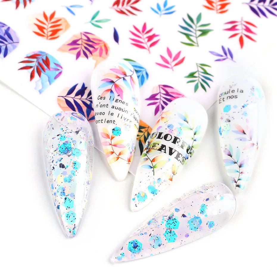 1 лист сухих цветов абстрактные кленовые листья наклейки для ногтей Цветочная обертка Лаванда клей для накладных ногтей вышивка 3D украшения для ногтей