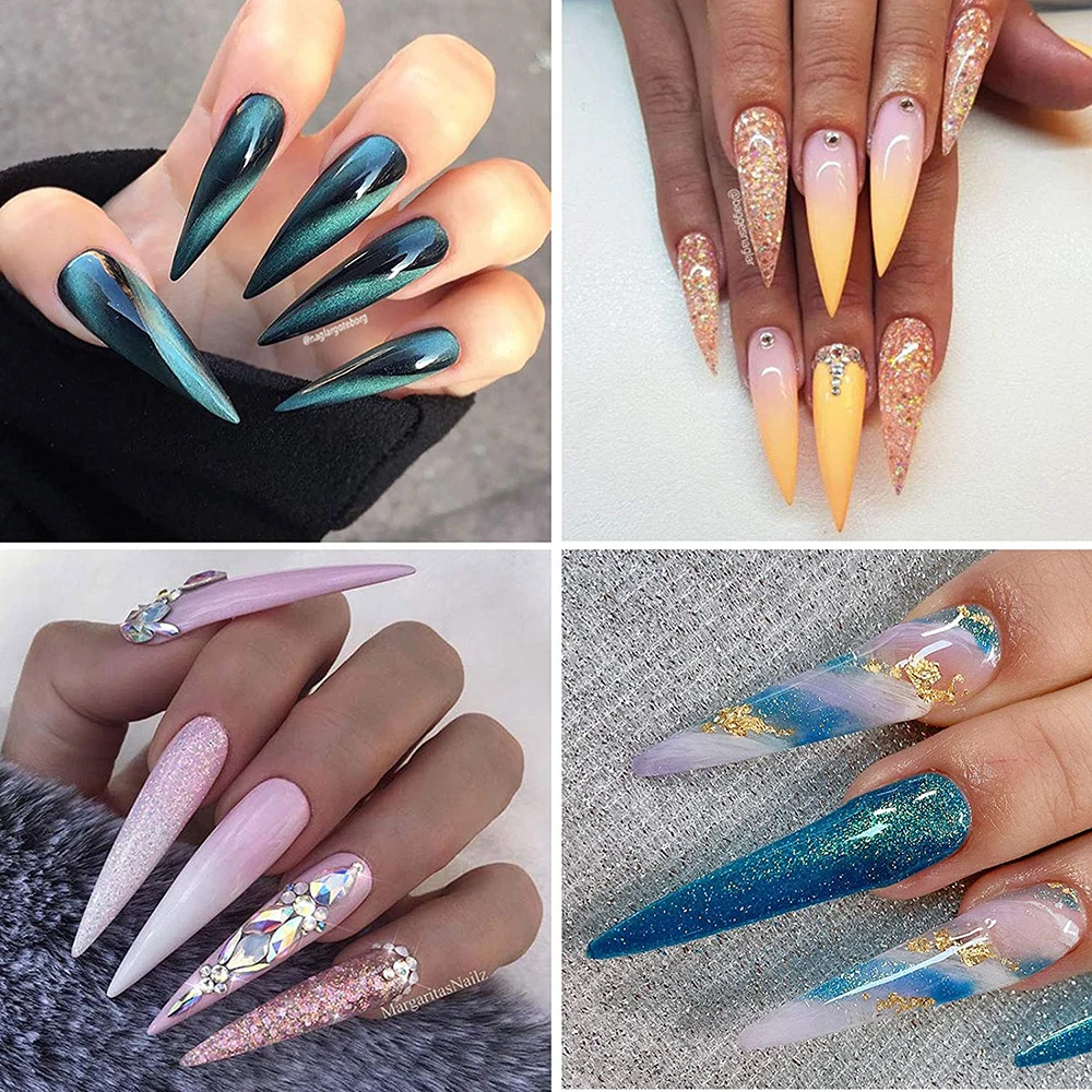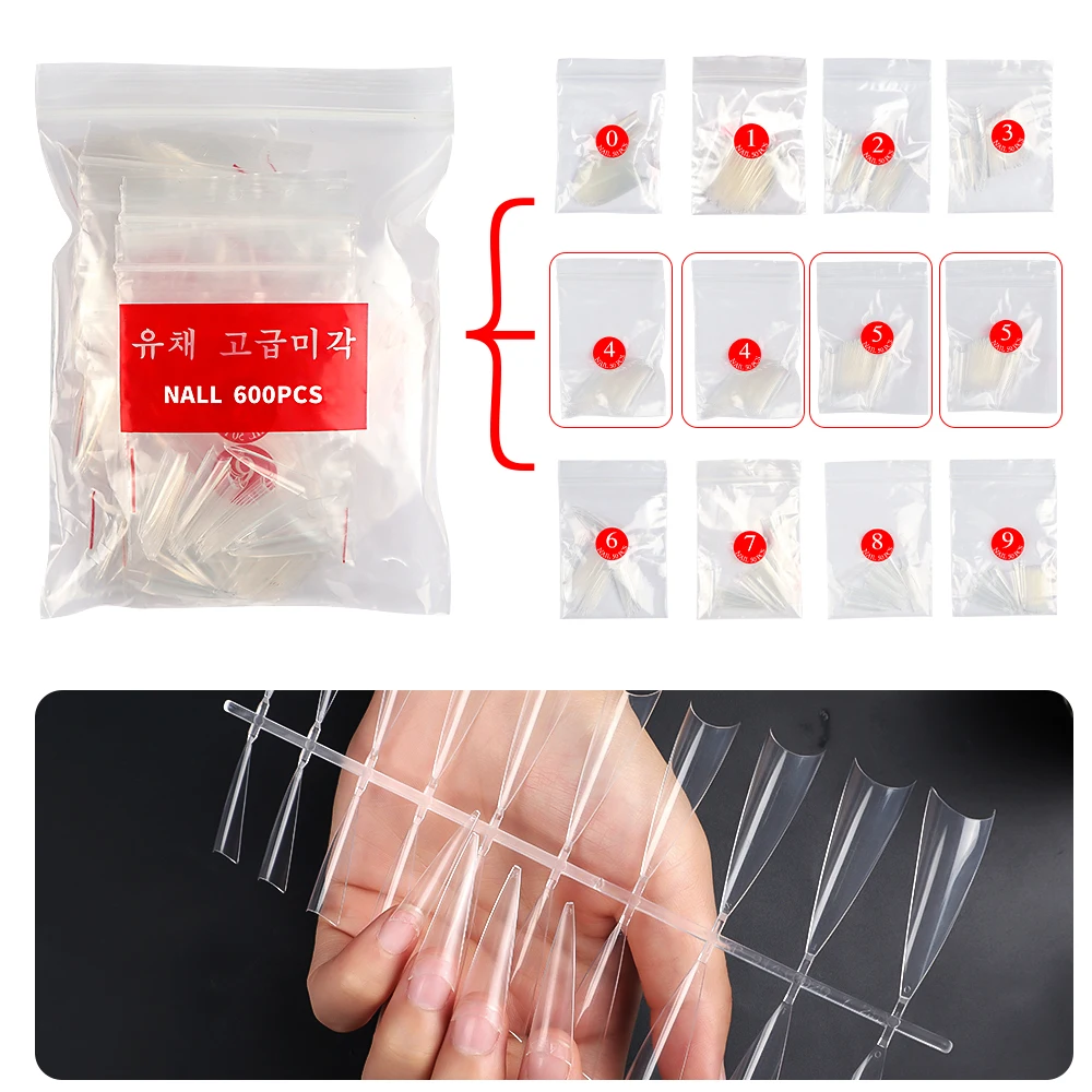 Прозрачные накладные ногти на шпильках 600 шт. акриловые накладные ногти на шпильках Длинная форма полуобложка накладные ногти Типсы 10 размеров