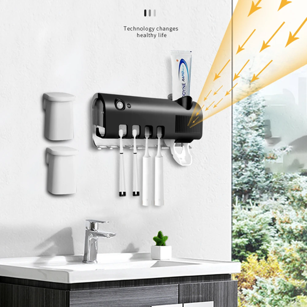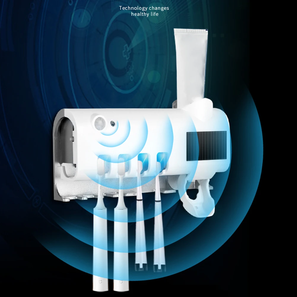 Диспенсер для зубных щеток, многофункциональный контейнер для хранения УФ-держатель для зубной пасты и для зубной щетки на солнечной энергии, зарядка от USB