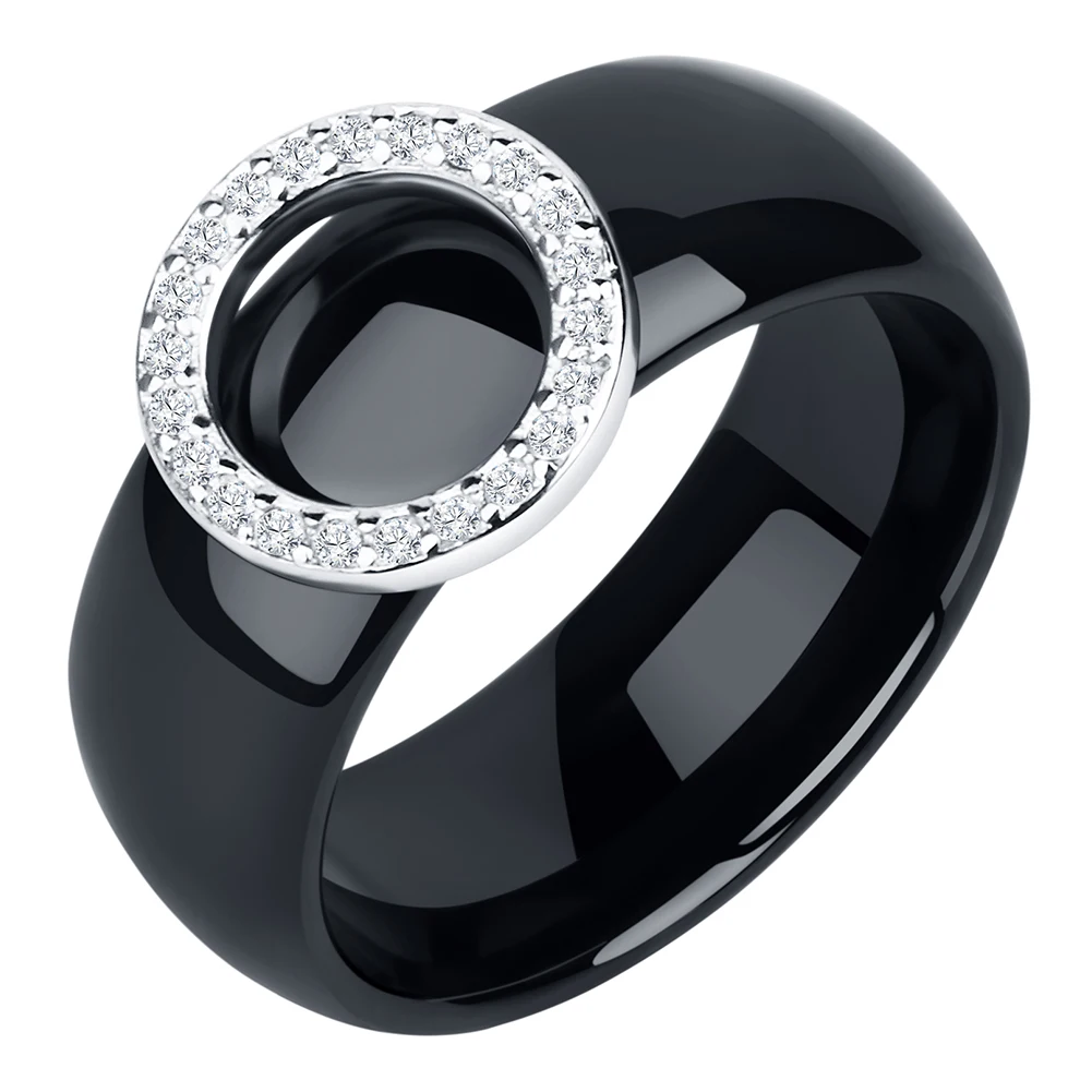 Кольца женские керамические, ширина 8 мм, с круглым кристаллом, 2020