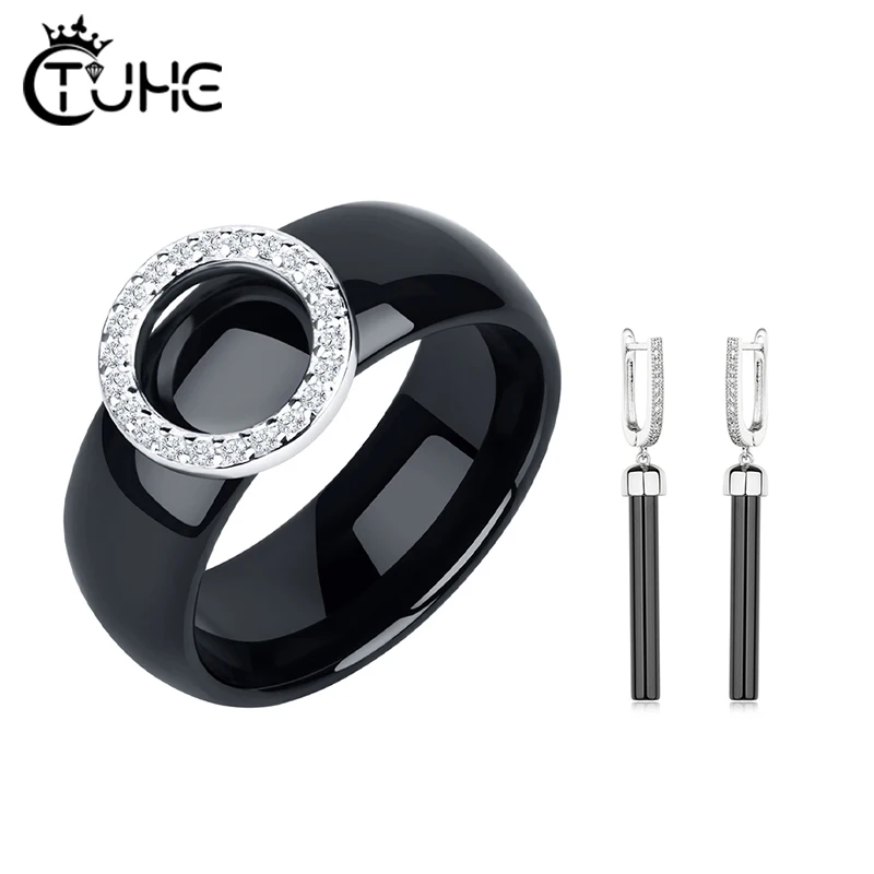 Большой Карат 6 мм керамическое кольцо для женщин ювелирный набор с...
