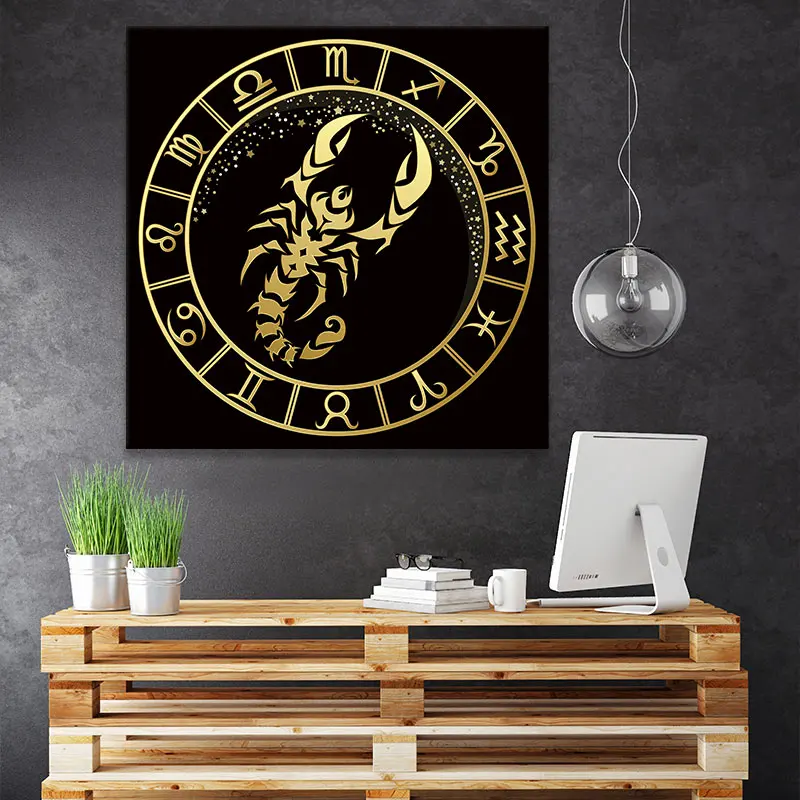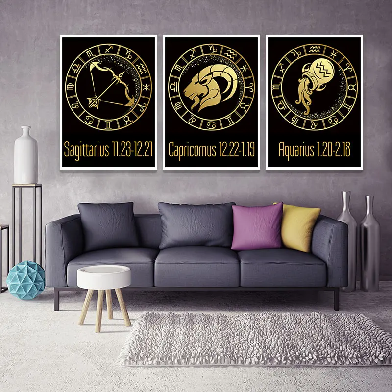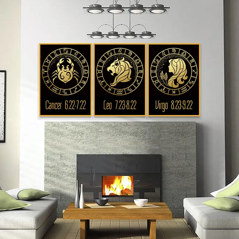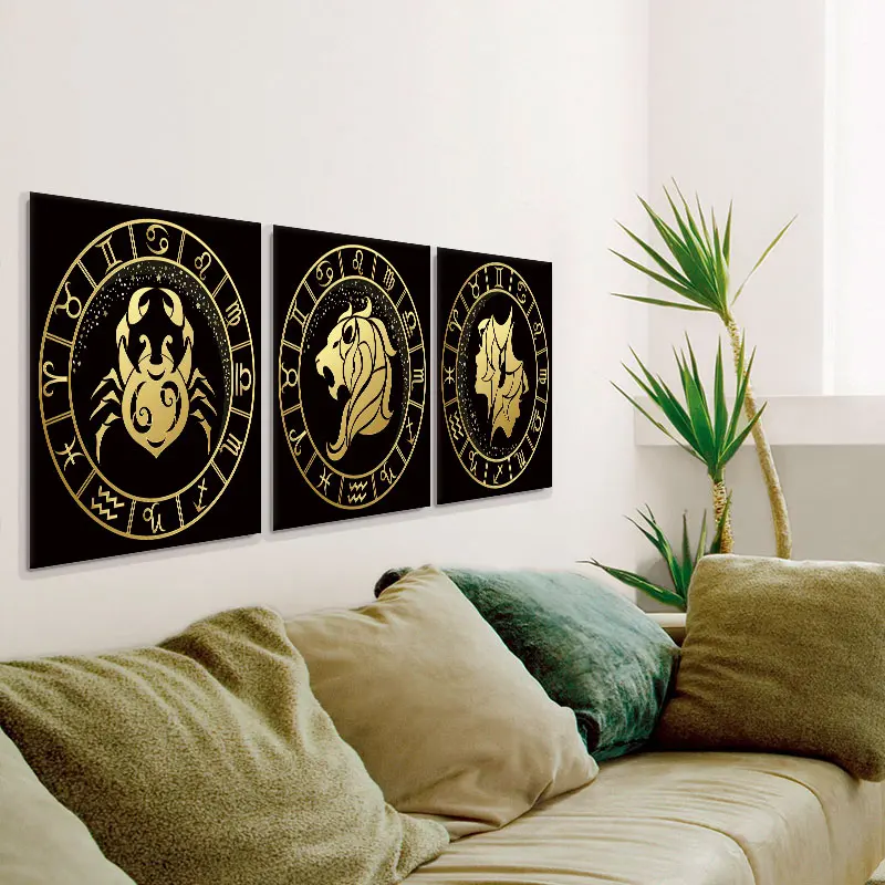 Современная черная Золотая картина со знаками Зодиака, Постер созве...