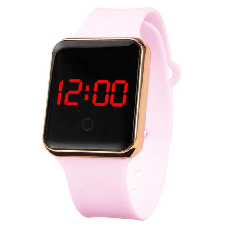 Простые женские цифровые часы с розовым ремешком, светодиодные электронные детские часы для мальчиков, наручные часы с квадратным циферблатом для женщин и мужчин, браслет Reloj Mujer