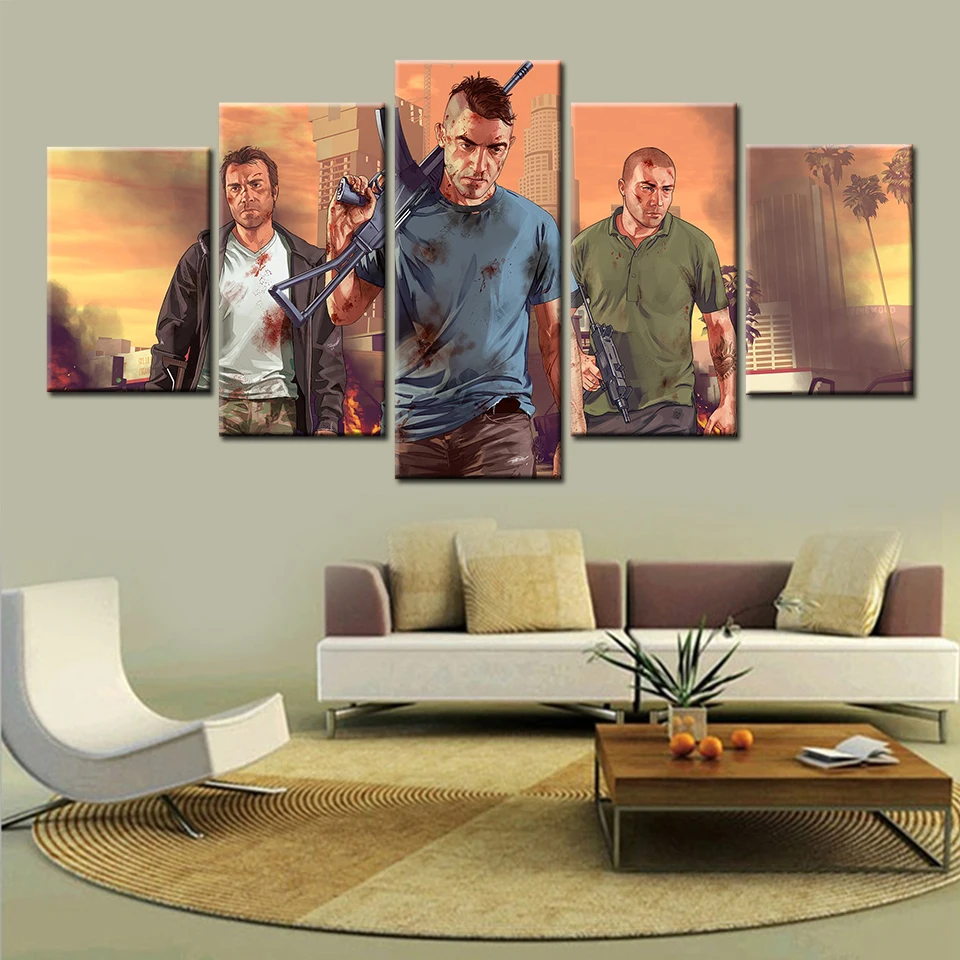 На заказ, печать на холсте, настенное искусство, Grand Theft Auto V, постер для игры GTA 5, обои, наклейка для бара, Фреска, рамка для украшения спальни