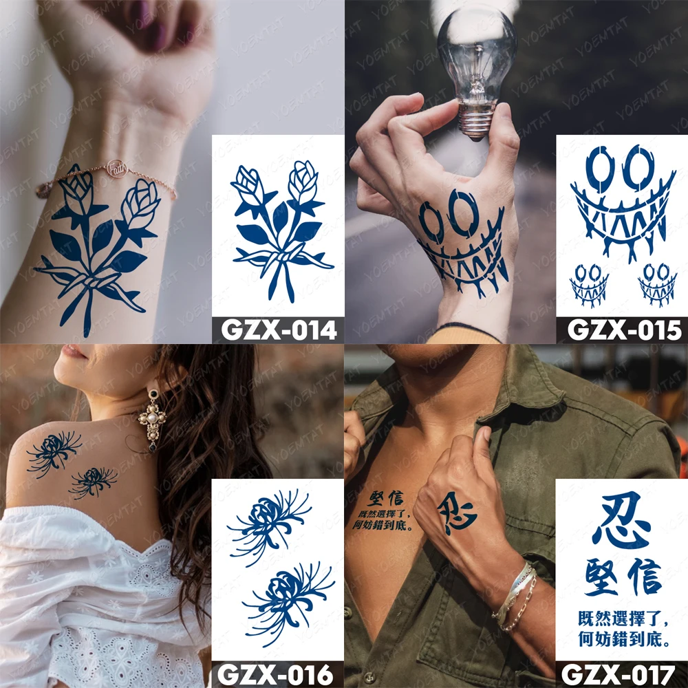 После контакта с кожей окисленно активированный пигмент появится синим и черным, что также является цветом настоящей татуировки. Не бойтесь втирания, это более реалистично, татуировка на две недели Новые материалы, отличные цвета, более реальные