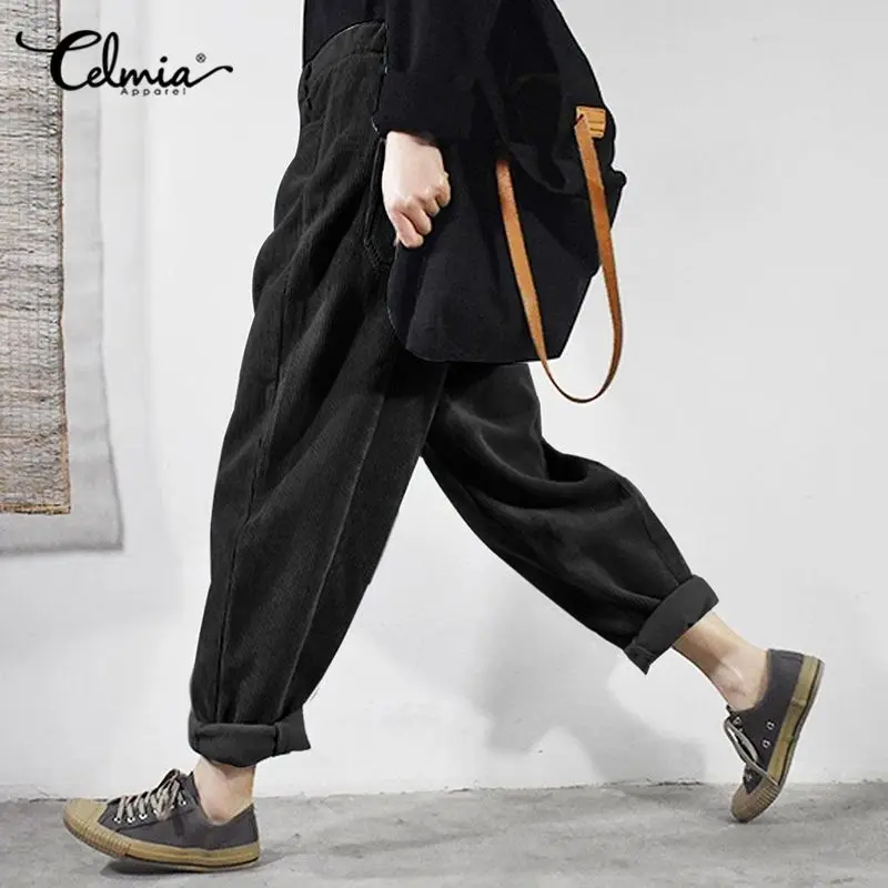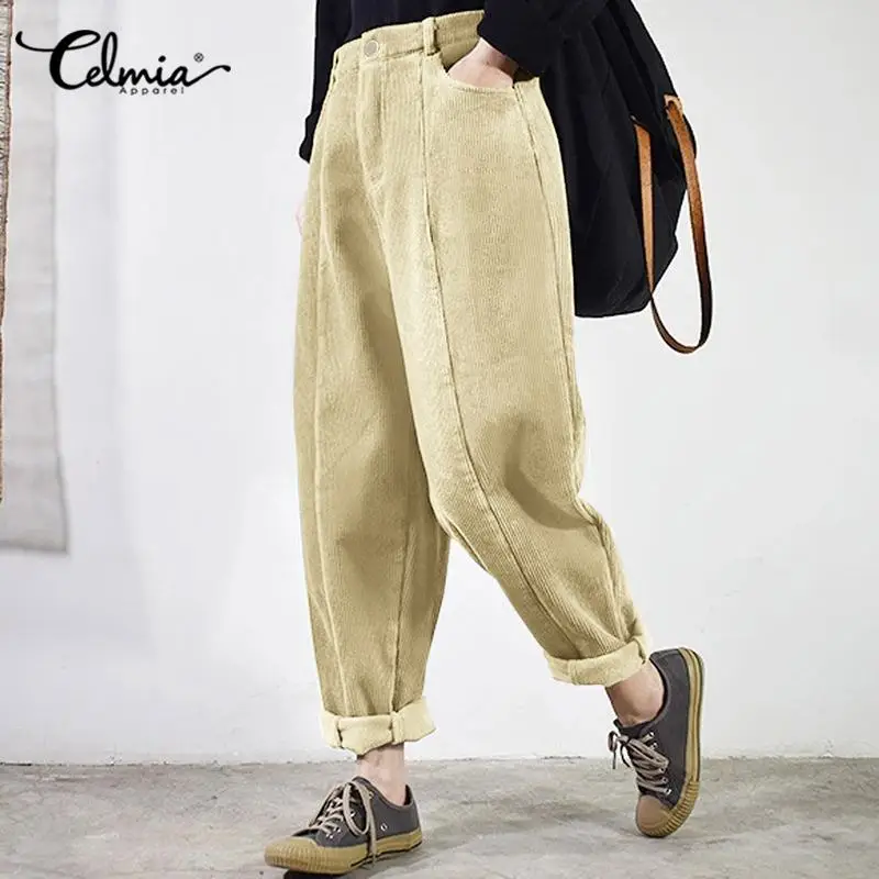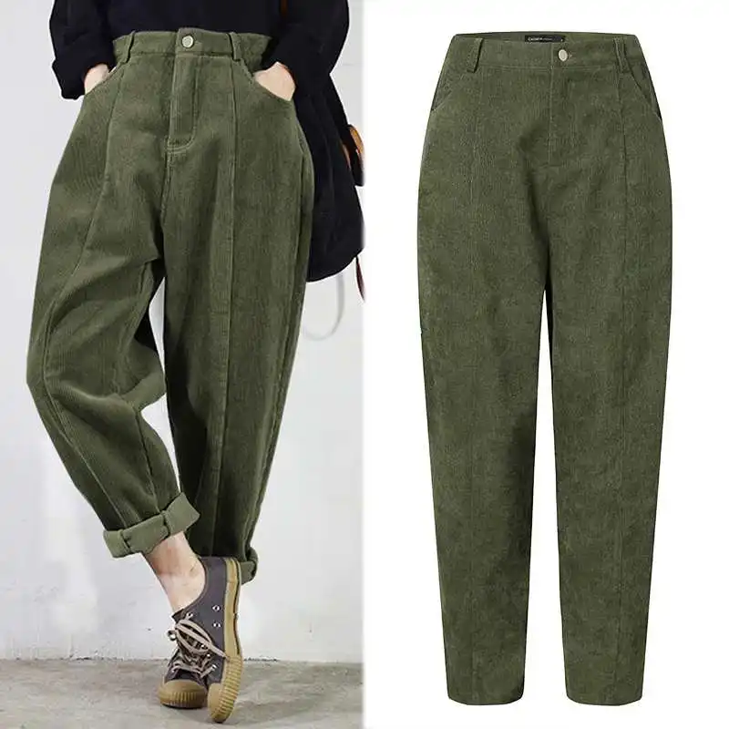 Женские вельветовые брюки с высокой талией, повседневные шаровары с карманами, стиль Харадзюку, Осень-зима 2021