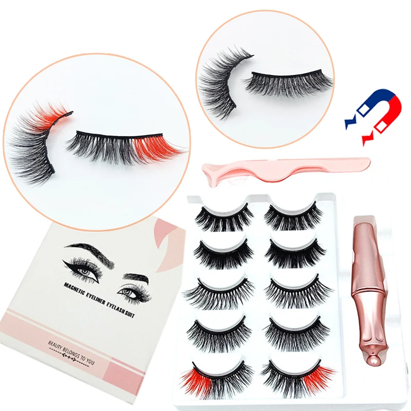 45 пар разноцветные магнитные 3D накладные ресницы Магнитная жидкая подводка для глаз Пинцет Набор толстых цветных накладных ресниц оптовая продажа