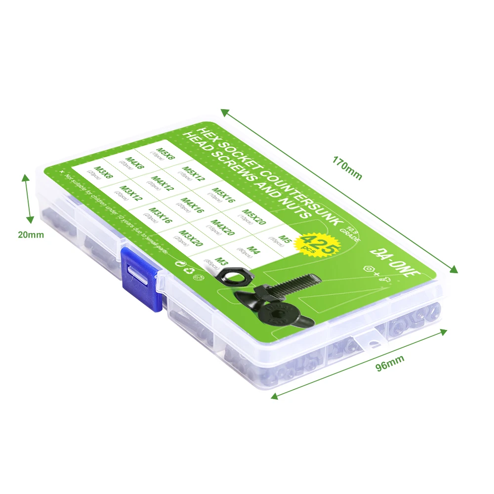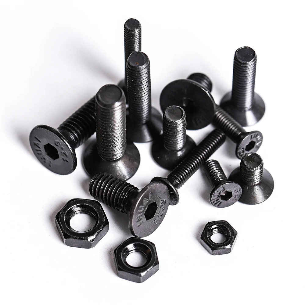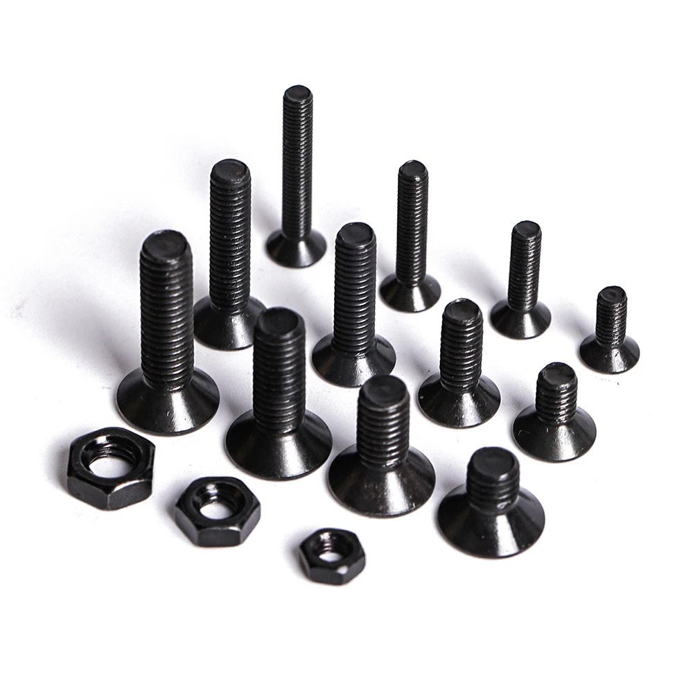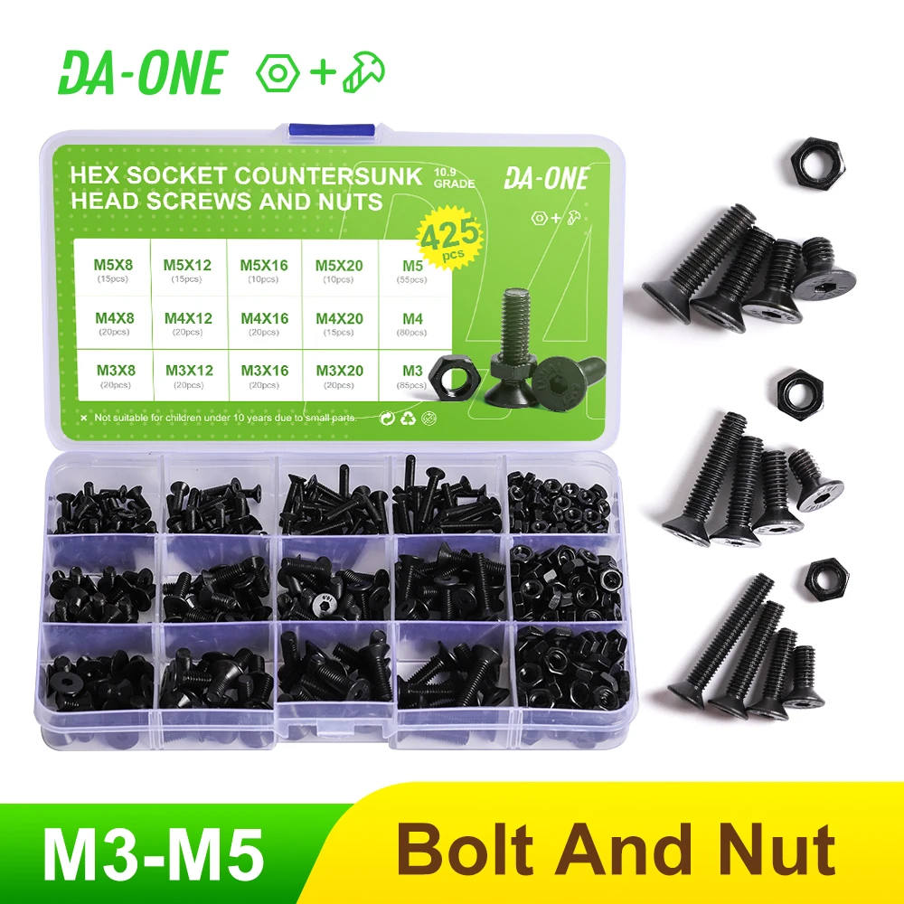 Набор высококачественных черных болтов с потайной головкой и шестигранной головкой M3 M4 M5, 425-шт, набор винтов и гаек-набор из легированной стали класса 10,9