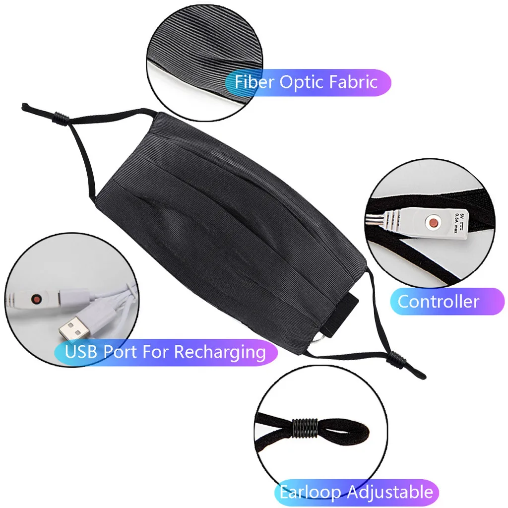 Светодиодная Маска для лица для взрослых, цветная светящаяся Маска для ночного клуба, бара, банджи, перезаряжаемая Маска для вечерние
