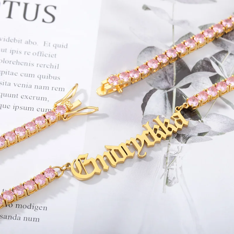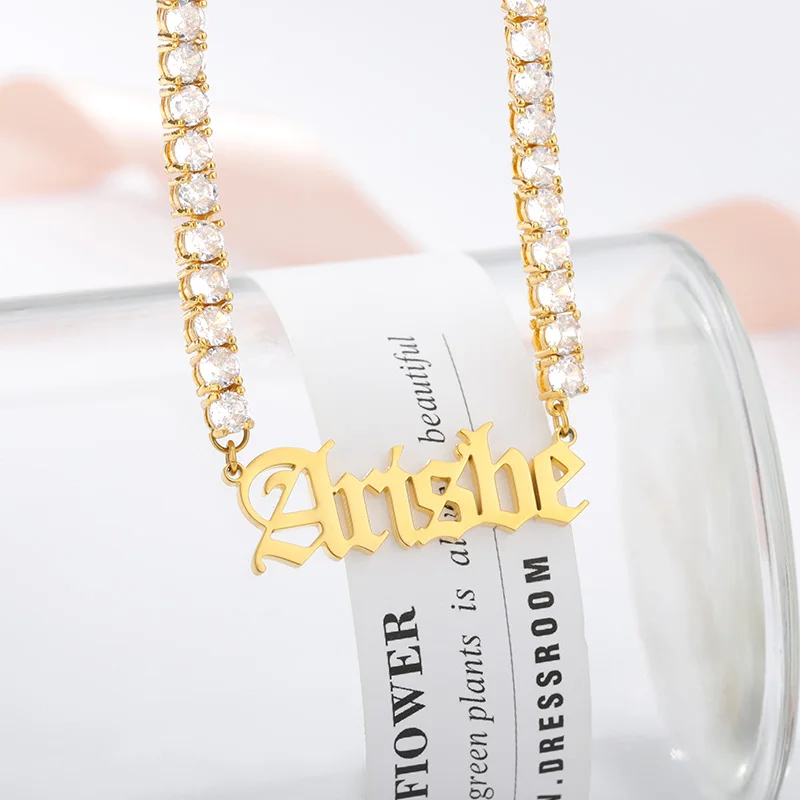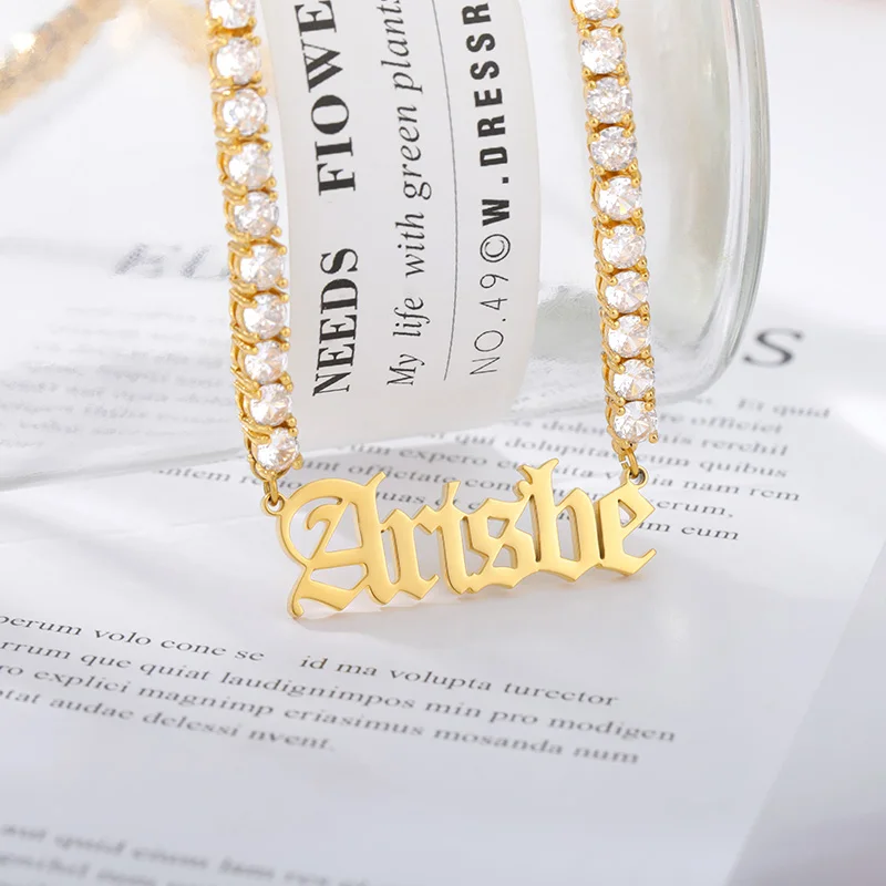 Ожерелье с именем на заказ для женщин, теннисная цепочка, персонализированное ожерелье с буквами из циркония, мужские ювелирные изделия из нержавеющей стали в стиле хип-хоп