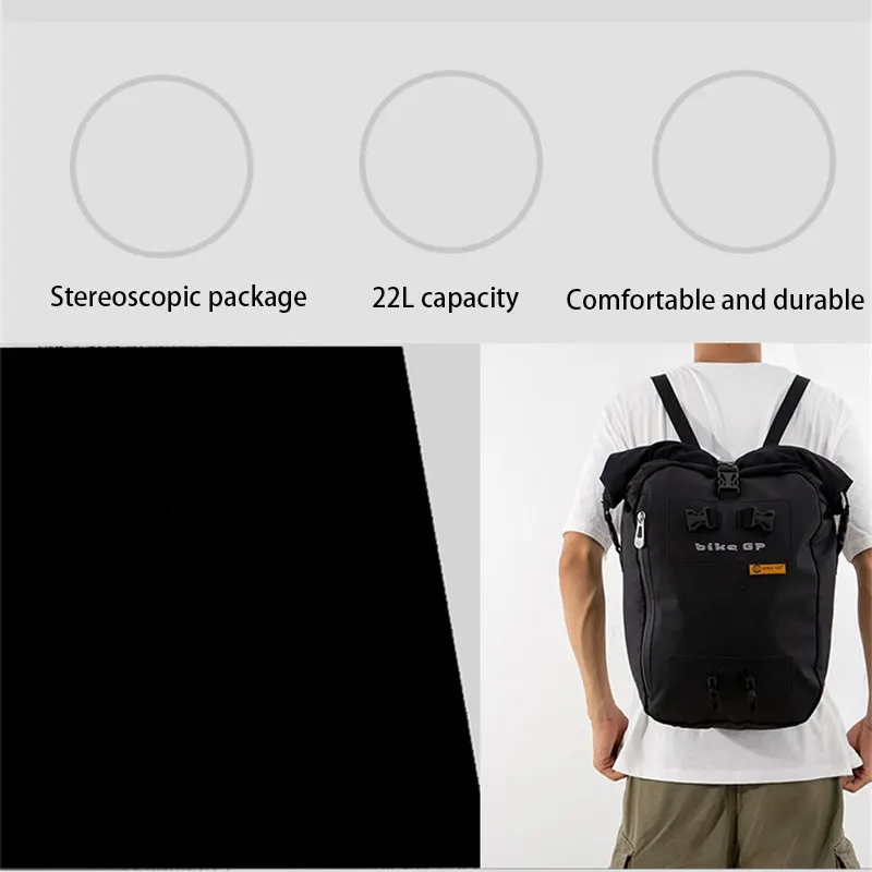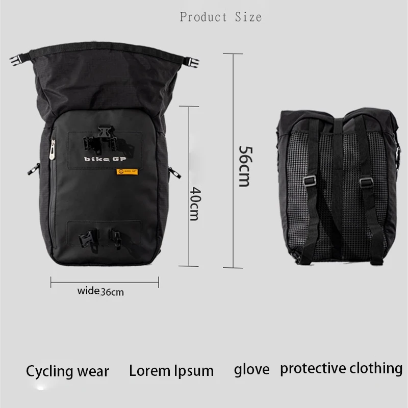 Основной цвет: черныйРазмер: Только один размерОбщая посылка по краям 36L- 58L. Максимальная односторонняя емкость 29Л. Практически любой тип шлемаПосылка включает в себя:2x сумка с дождевиком