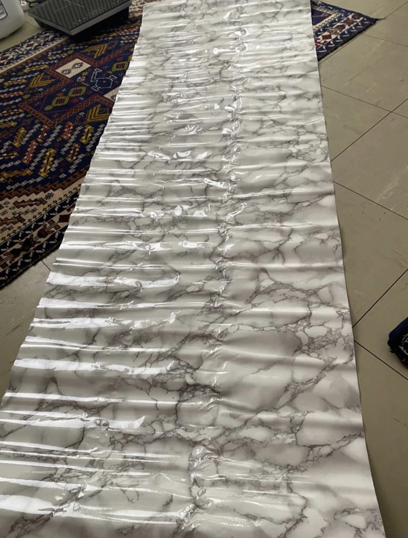 Бумага не очень липкая, пузырьки не опускаются, и она не полностью прилипает к каменной стене.