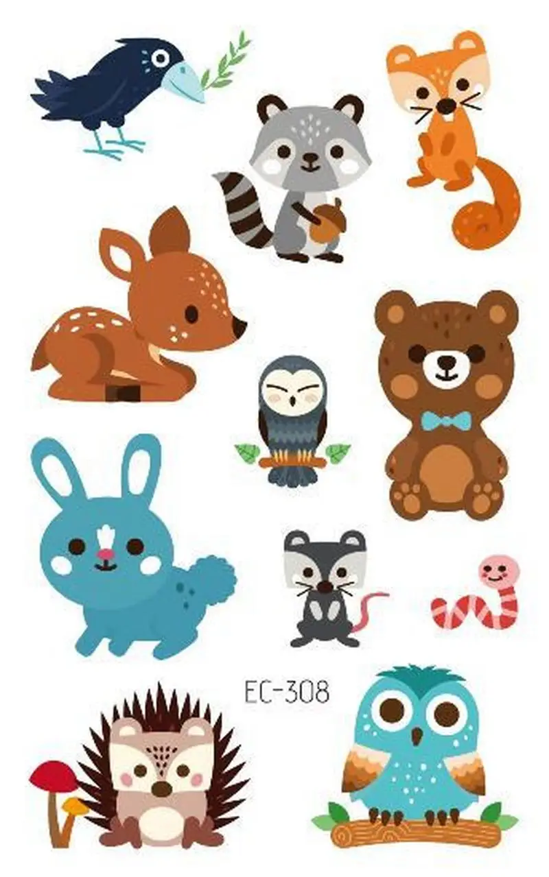 Детская татуировка, стикер, животные, мультяшная татуировка, Медвед...