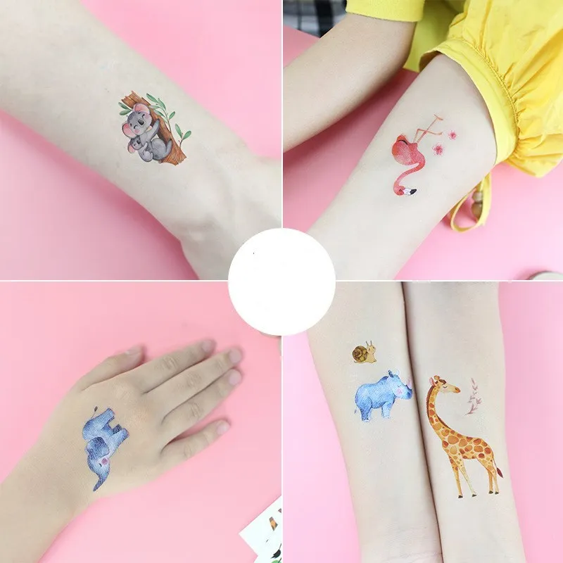 Детские Мультяшные тату-наклейки, милые маленькие животные, водонеп...