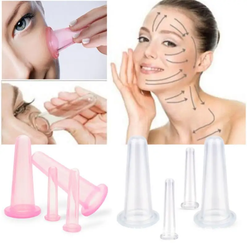 4 шт.компл. Вакуумный Массаж Банки для вакуумного массажа банки силиконовые банки Чистка для лица и тела Портативный для дома с антискользящим покрытием; Против морщин массажер массаж баночный набор