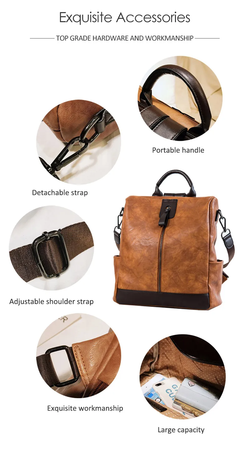 Модный женский кожаный рюкзак, многофункциональные кожаные рюкзаки для женщин, большая сумка для книг, сумка для путешествий