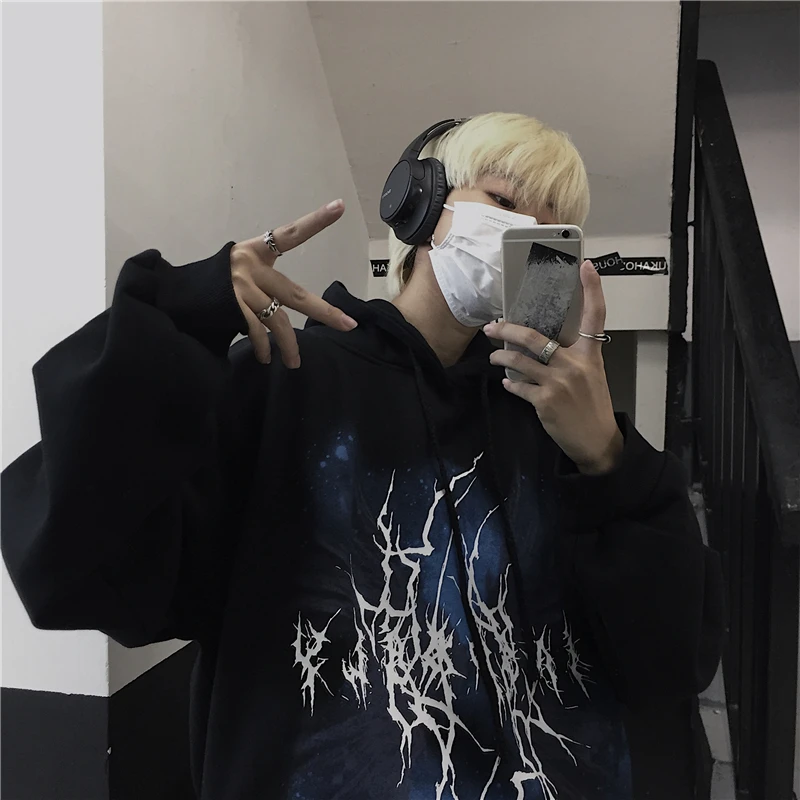 Женский свитшот в стиле Харадзюку, свободные топы в готическом стиле, женская одежда в стиле панк, уличная одежда большого размера в стиле хип-хоп, зимняя толстовка с капюшоном в стиле ольччан
