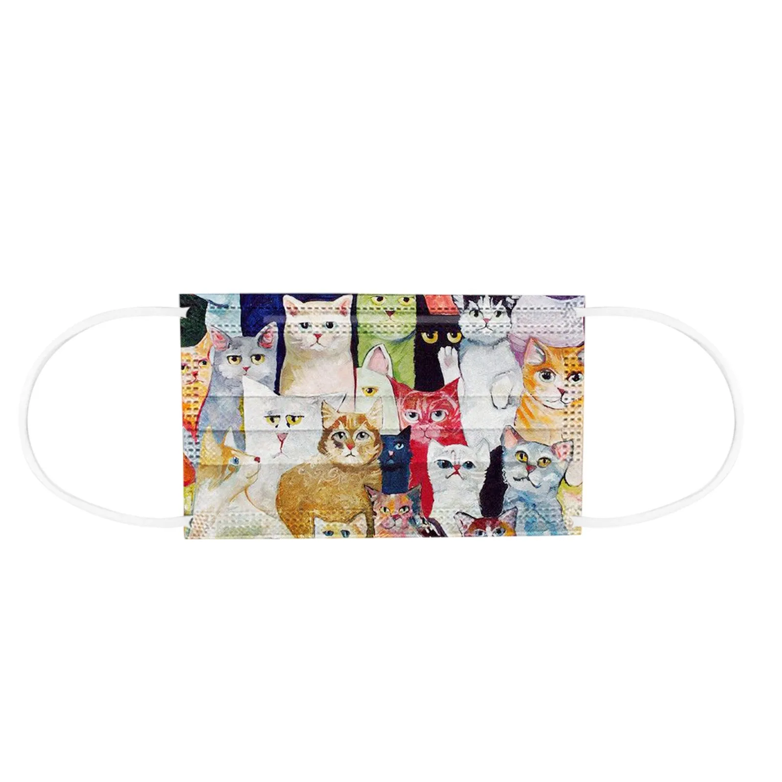 10 шт. одноразовая маска для лица для взрослых Kawaii Cat Print, трехслойная защитная маска для рта, дышащие маски для лица