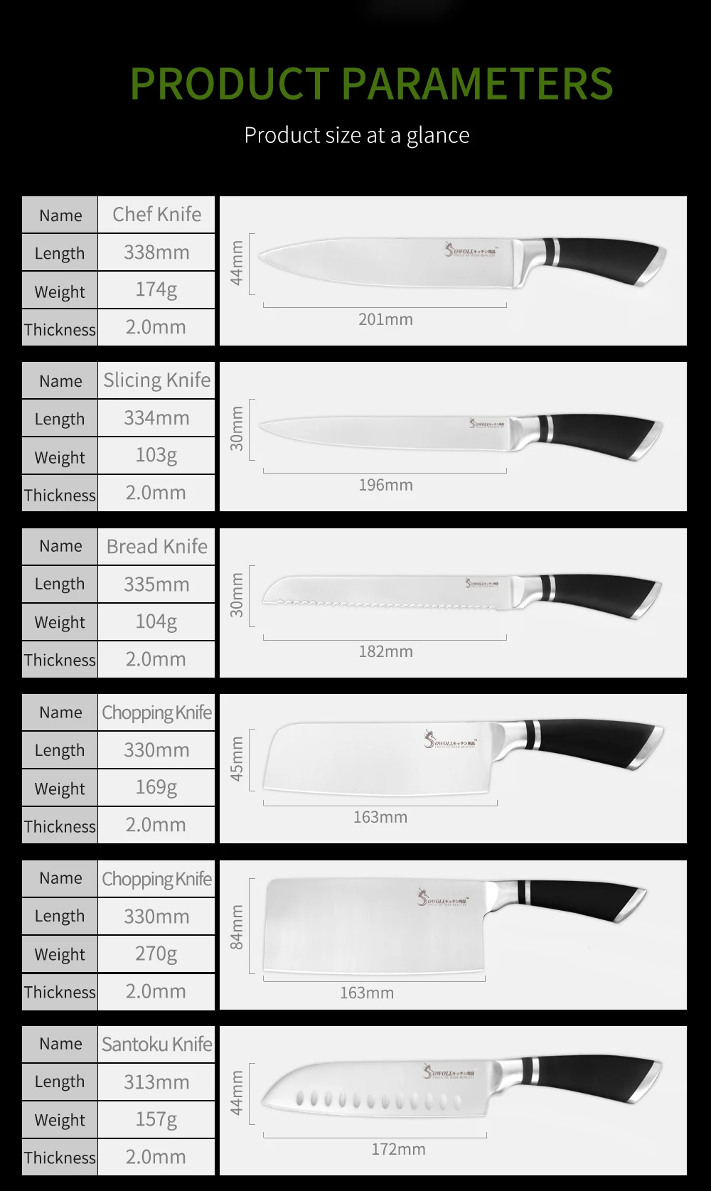 Ножи из нержавеющей стали Sowoll, нескользящая ручка, шеф-повар, нож сантоку для нарезания, нож мясника, кухонные ножи, инструменты для готовки и домашнего использования
