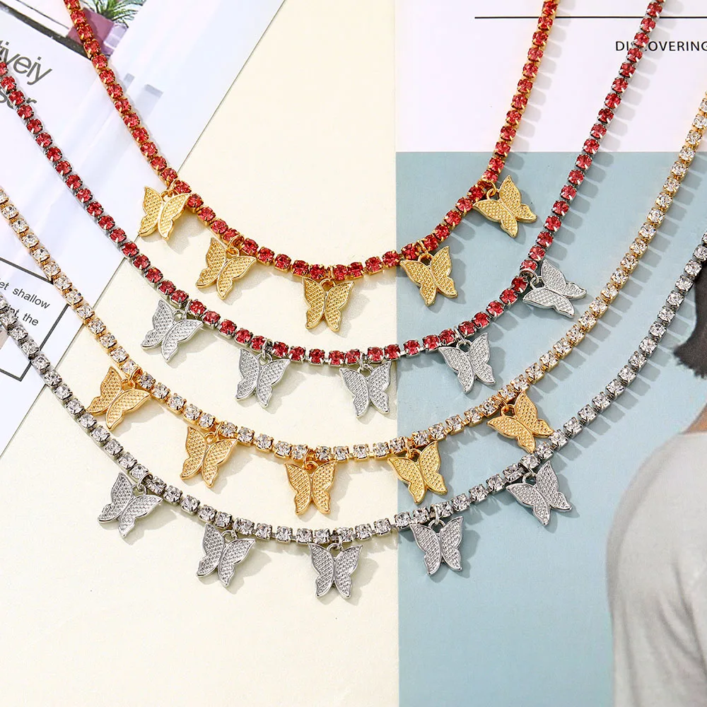 Женское винтажное ожерелье FNIO с подвеской-бабочкой, цепочка с блестящими кристаллами до ключиц, Ювелирное Украшение в подарок
