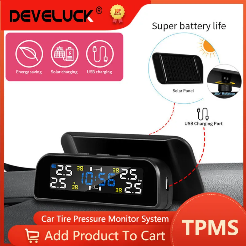 2021 новая система контроля давления в шинах с часами на солнечной батарее, ЖК-дисплей, беспроводная система контроля давления в шинах, 4 внешних датчика давления в шинах, датчик s