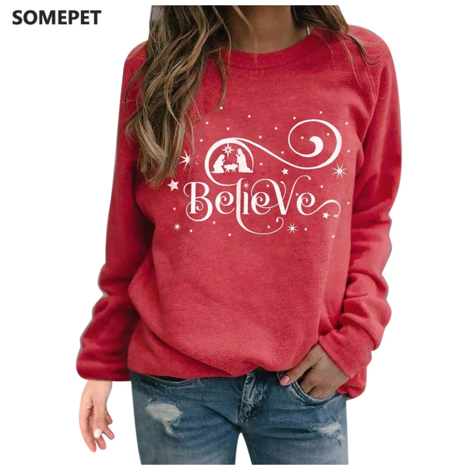 2020 модные рождественские женские свитера с рождественским принтом свитера с длинным рукавом Повседневный Топ свободные свитера пуловеры для женщин
