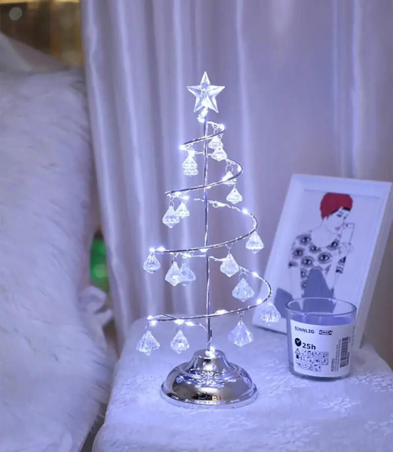 Сказочная лампа, спиральный светильник, Настольная Подарочная лампа в форме дерева, домашний декор, Хрустальная подвеска на батарейках для спальни, светодиодный Рождественский Декор