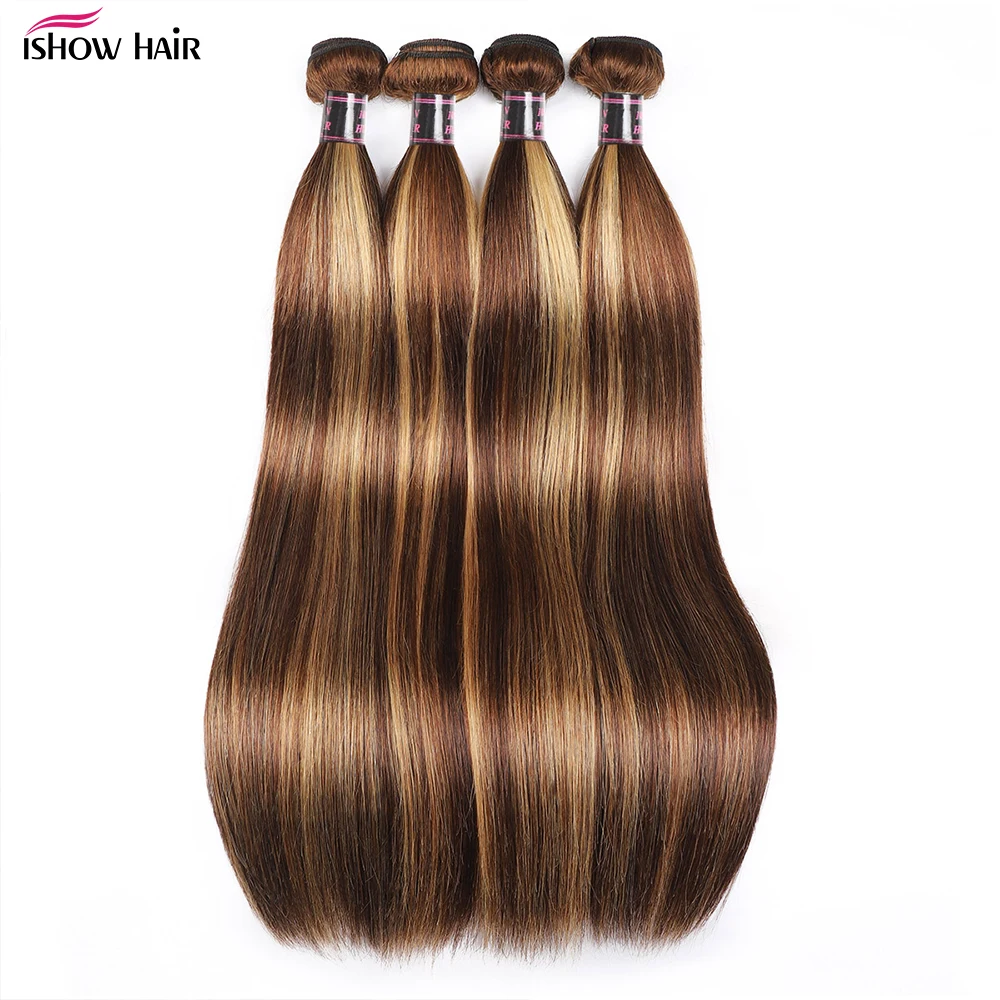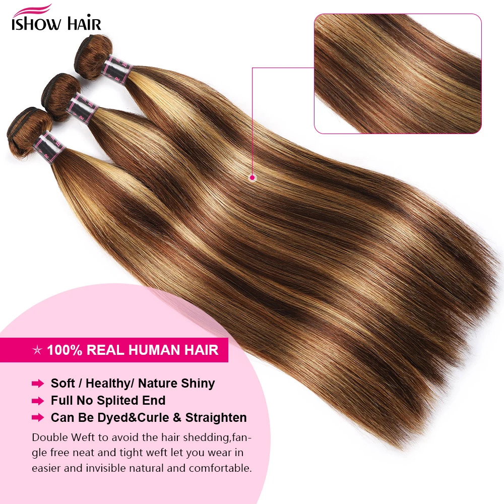 Ishow, бразильские пряди волос с эффектом омбре, кости, прямые человеческие волосы в пучках P427, коричневые с хайлайтером, пряпряди волос Remy