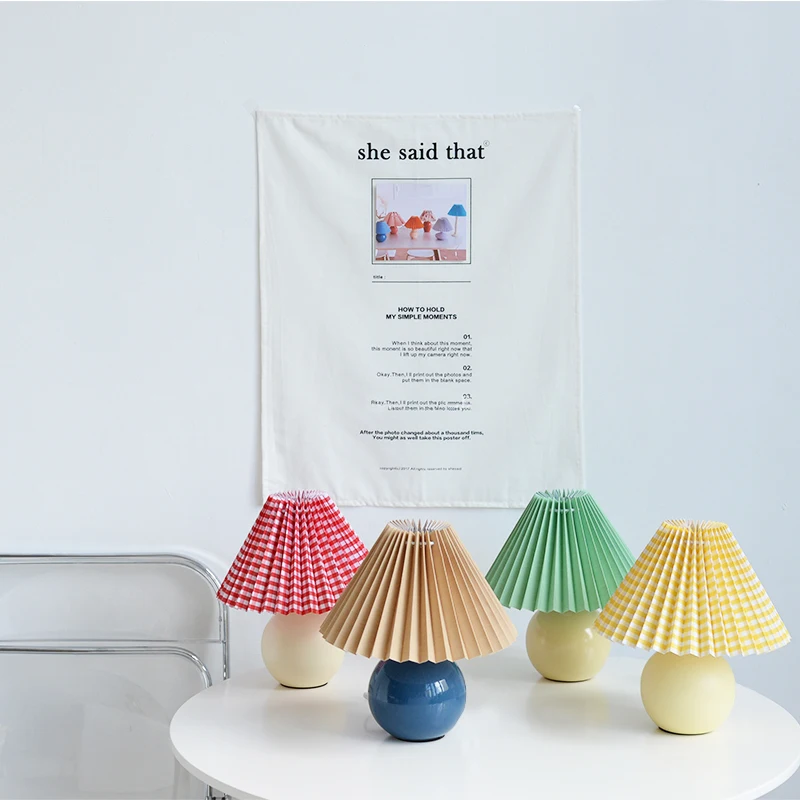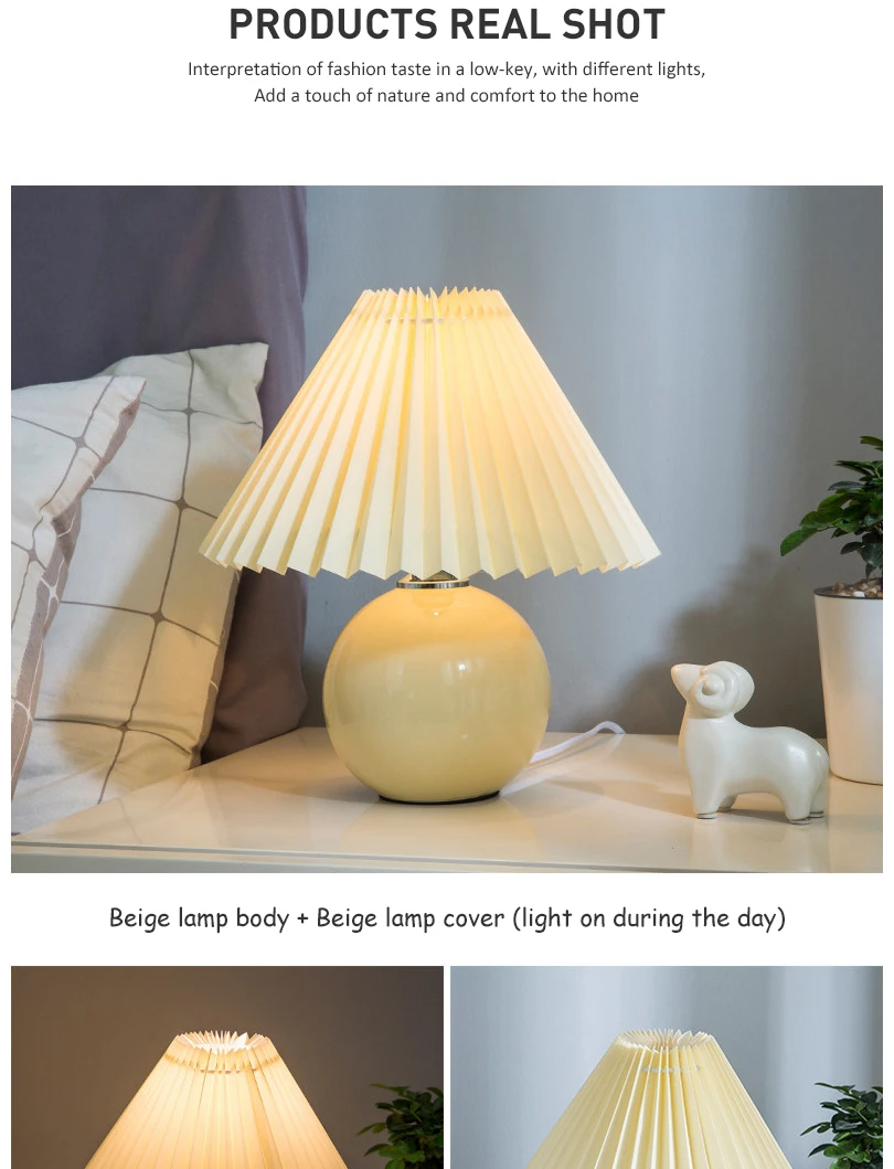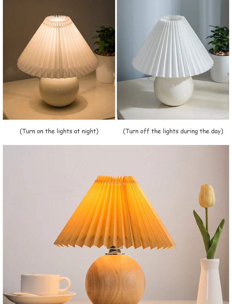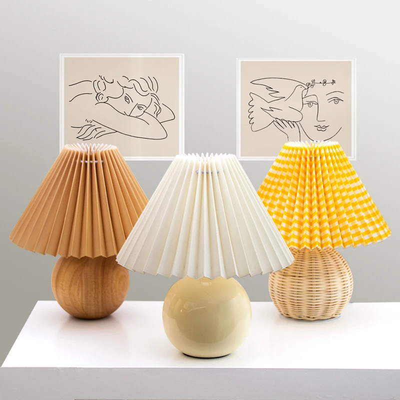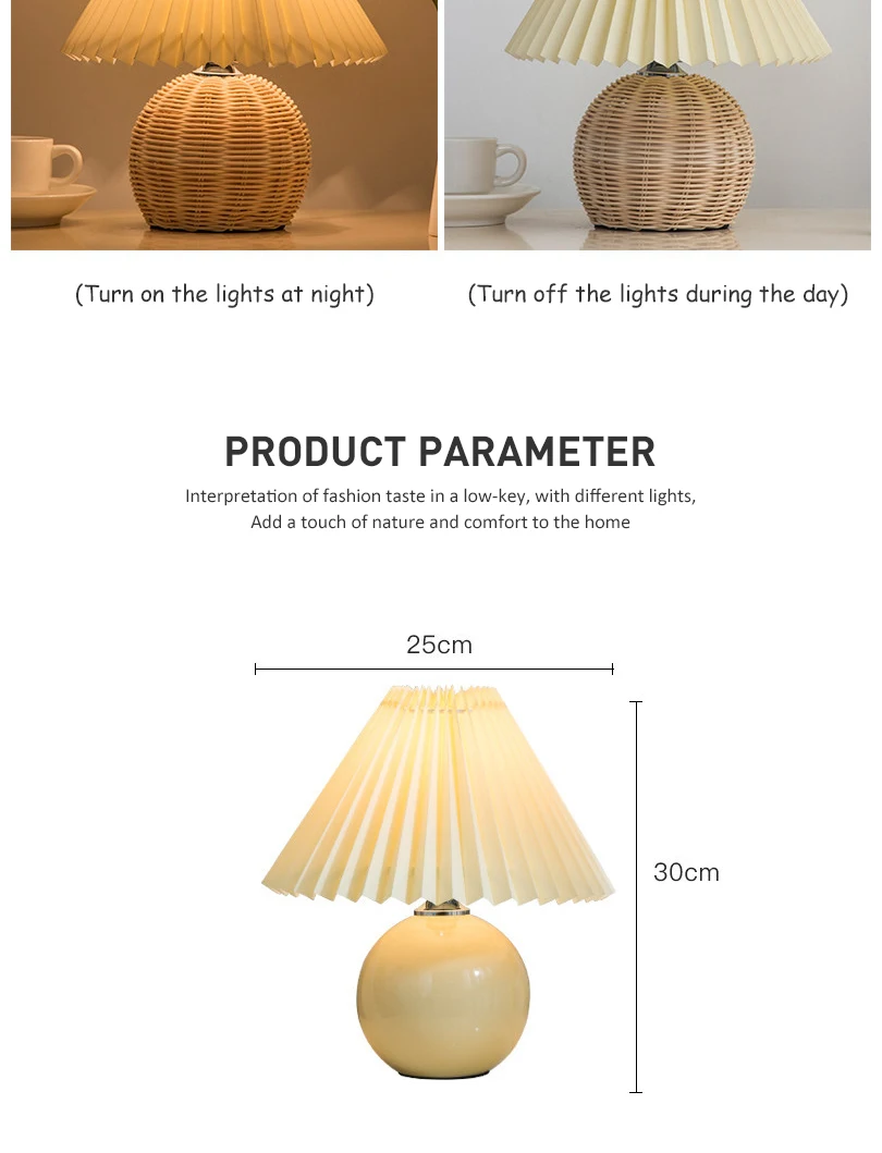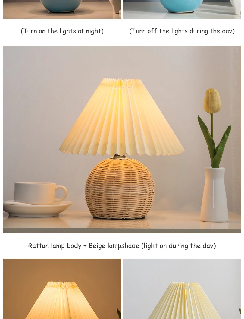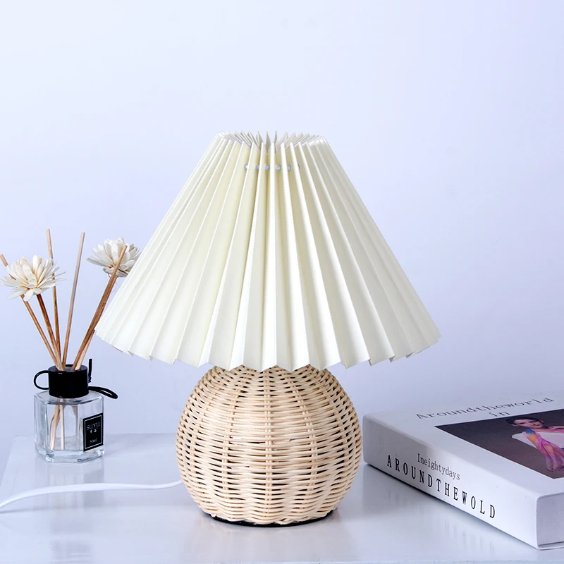 Корейская плиссированная настольная лампа PHYVAL из ротанга, лампа для гостиной, домашнее украшение, винтажный прикроватный светильник с трехцветсветодиодный ными лампочками