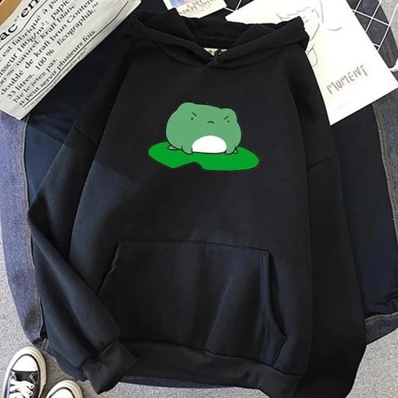 Женская толстовка в стиле Харадзюку с принтом лягушки, пуловер с ка...