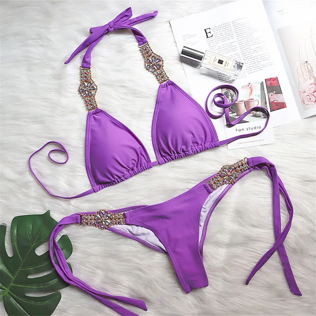 Бикини женское, 6 цветов, стразы с бриллиантами, комплект бикини из...
