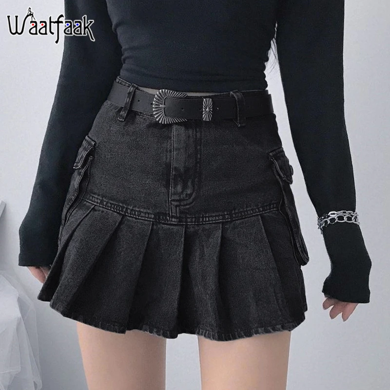 Юбка женская джинсовая плиссированная, винтажная модная готическая ...