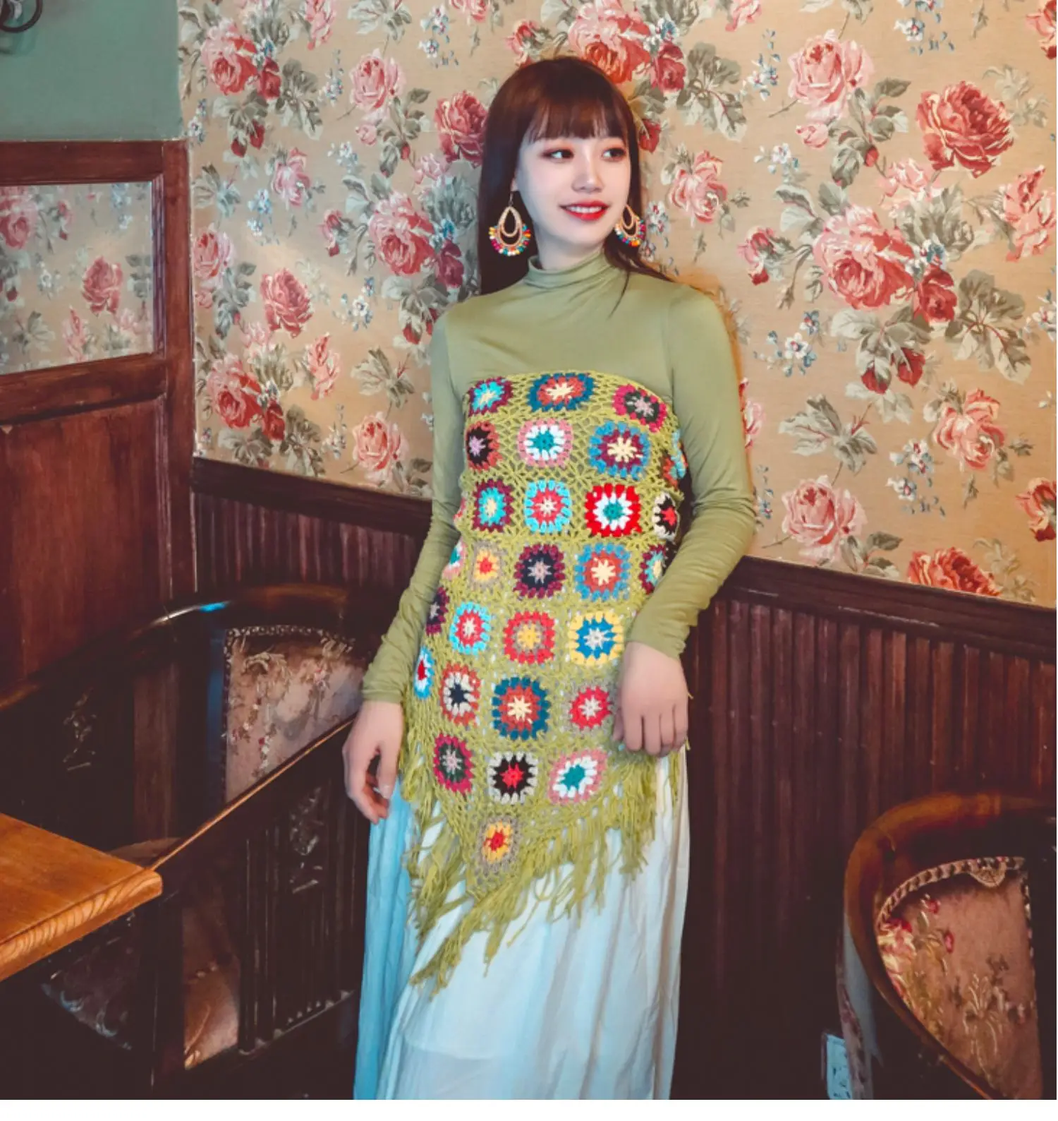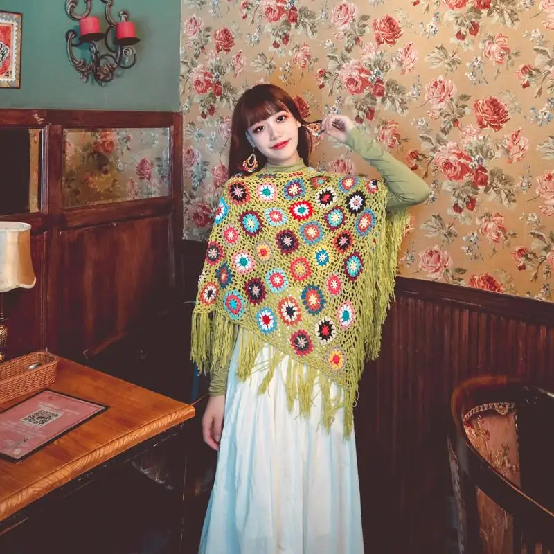 Богемная шаль с бахромой ручной работы в этническом стиле, геометрический шарф в клетку, шесть цветов