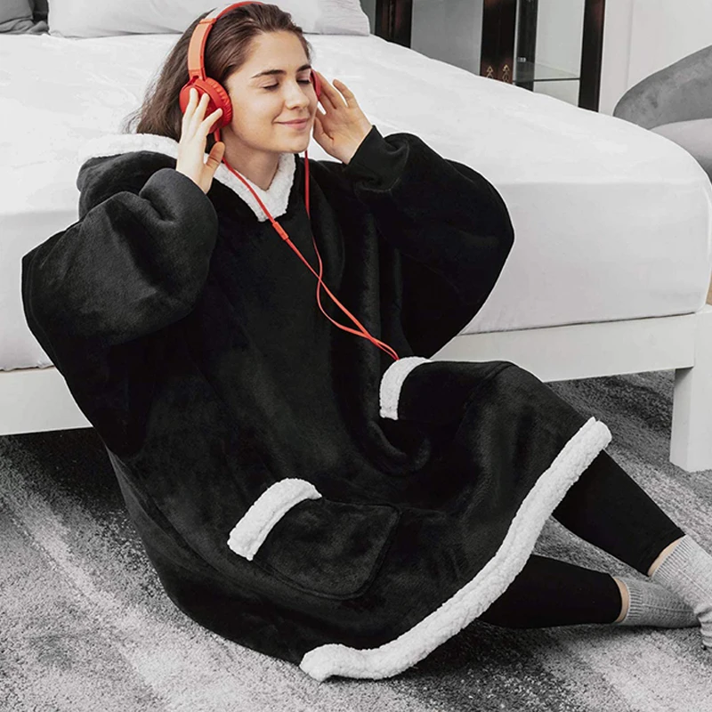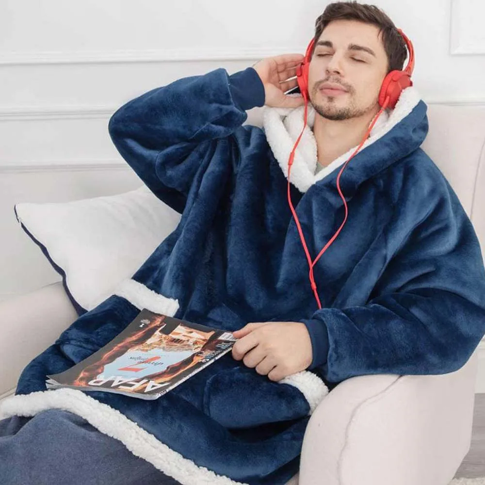 # A одеяло-Толстовка, как предмет одежды, так и одеяло. Вы можете не только носить носимые одеяла, когда смотрите телевизор дома, но и носить одеяло толстовки для пикников и костров. Гигантский капюшон сохраняет вашу голову в тепле, а широкая горловина позволяет легко одеваться и держать шею в комфорте.