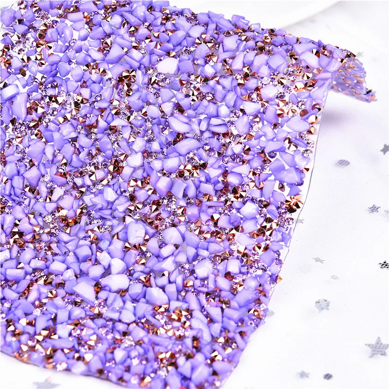 24*40 см Смола Стразы Фиолетовый Натуральный дробленый камень Резина бриллиантовый лист горячей фиксации сетка Сделай Сам одежда железные аксессуары для мебели