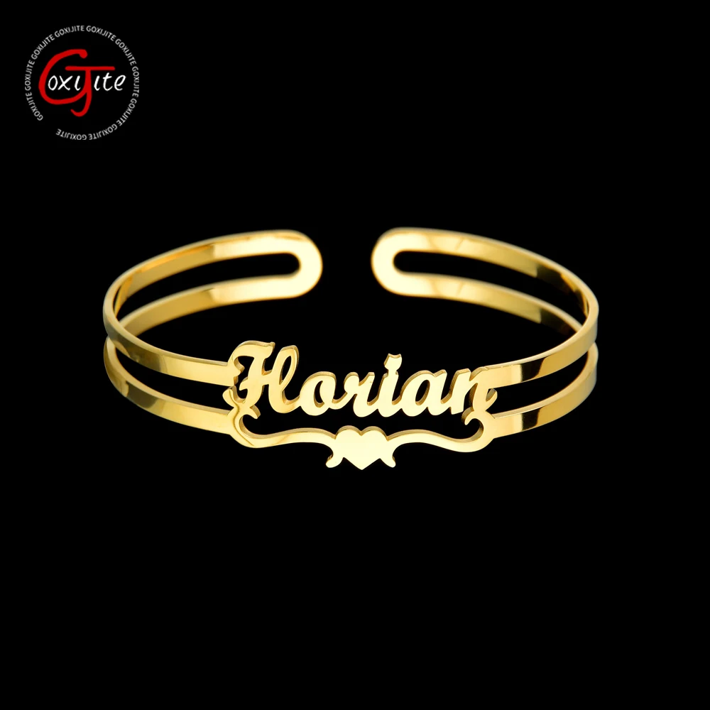 Модный браслет Goxijite с именем на заказ для женщин и детей, персонализированный браслет из нержавеющей стали с именем Золотого сердца, лучший подарок