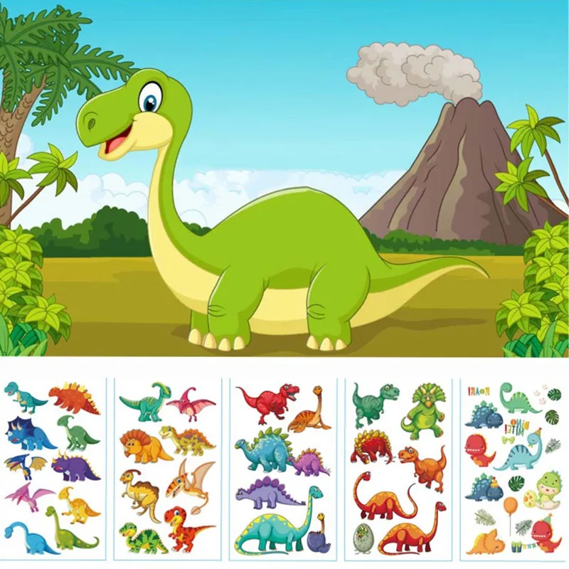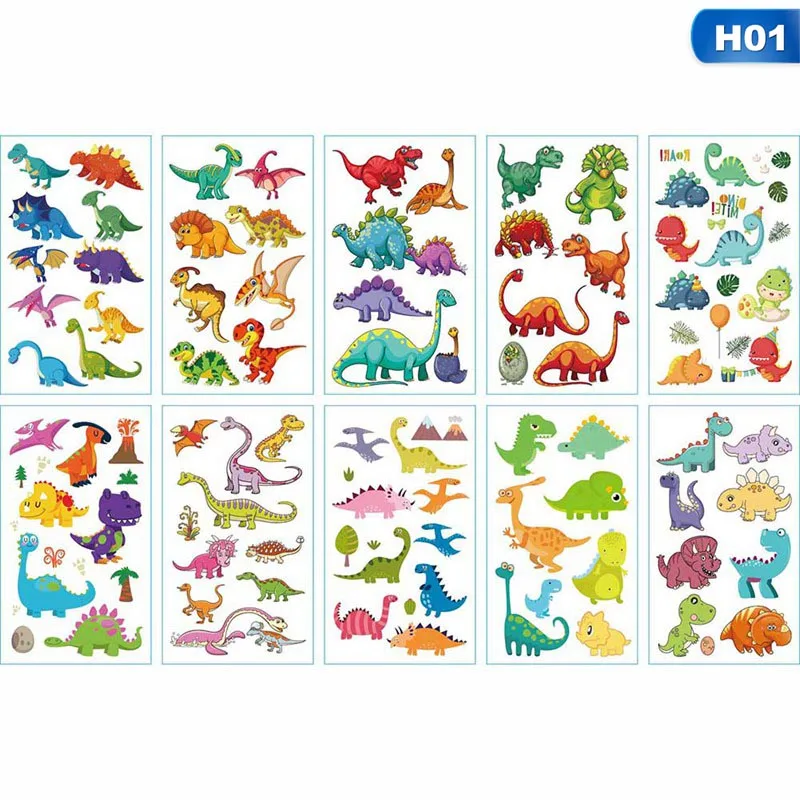 10 листовнабор динозавров макияж, Временные татуировки, наклейки, милый комплект-имитация татуировки флеш-тату Водонепроницаемый небольшой для боди-арта для детей