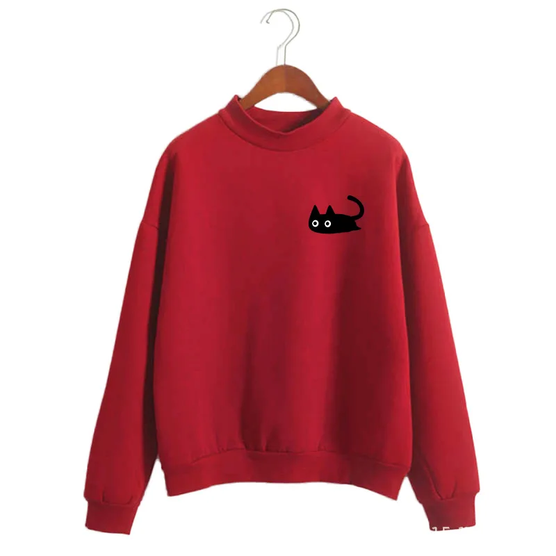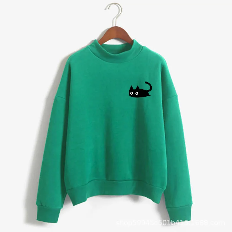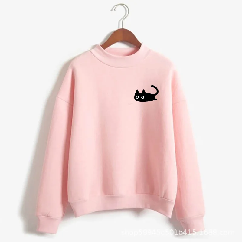 Осенне-зимняя новая модная осенне-зимняя Толстовка с длинным рукавом и рисунком черного кота
