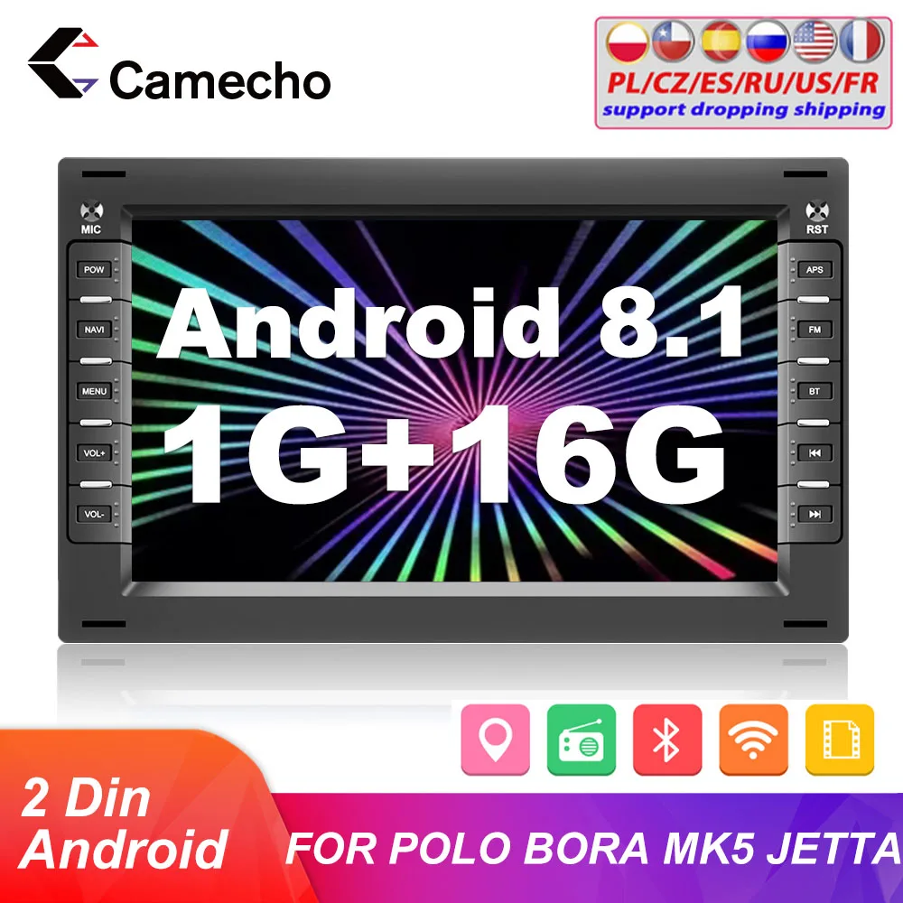 Camecho Android 2 Din Автомобильный Радио мультимедийный плеер 2din GPS WiFi Автомобильный Stero для BORA POLO MK5 SHARAN JETTA MK4 CITI CHICO