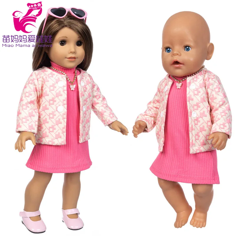 Одежда для куклы 18 дюймов, розовое пальто, платье для куклы, 43 см, женский костюм, платье, подарок для маленьких девочек, игрушки, наряды