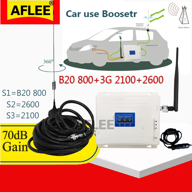Использование в машине! Трехдиапазонный усилитель сотового сигнала B20, 800, 2100, 2600 МГц, 4G, Усилитель мобильного сигнала, 2G, 3G, 4G, ретранслятор сотовой связи LTE, WCDMA, LTE