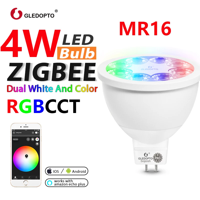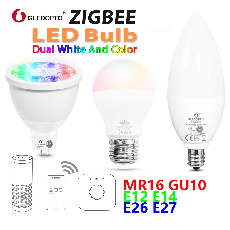 Умный Точечный светильник ильник GLEDOPTO ZigBee, 3,0 RGB + CCT, лампа-свеча, MR16, GU10, E26, E12, E14, E27, работает с alexa